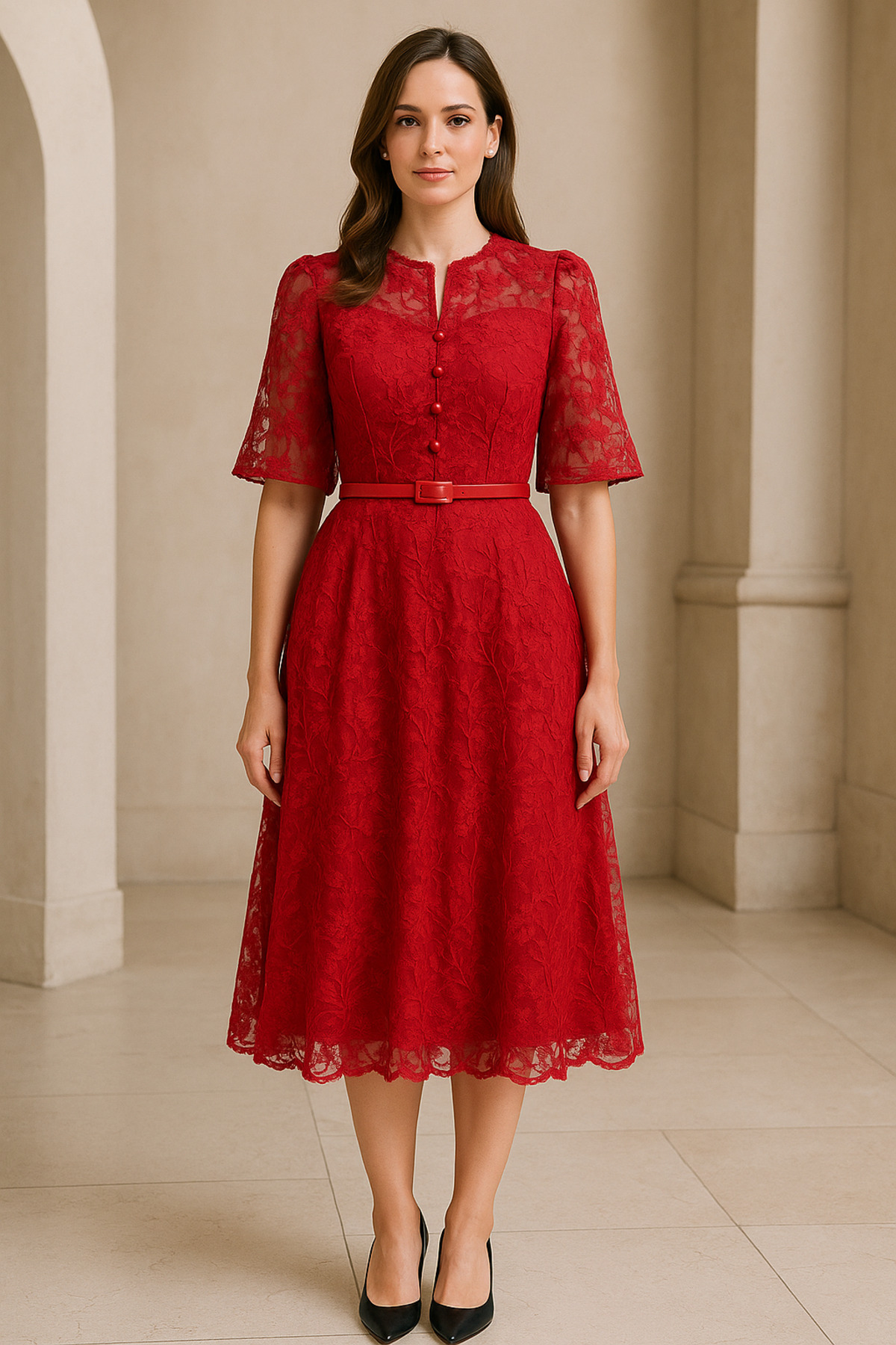 Kemerli Yarım Kol Transparan Dantel Çiçek Desenli Detaylı Midi Elbise Kemerli Yarım Kol Transparan Dantel Çiçek Desenli Detaylı Midi Elbise 8552 44