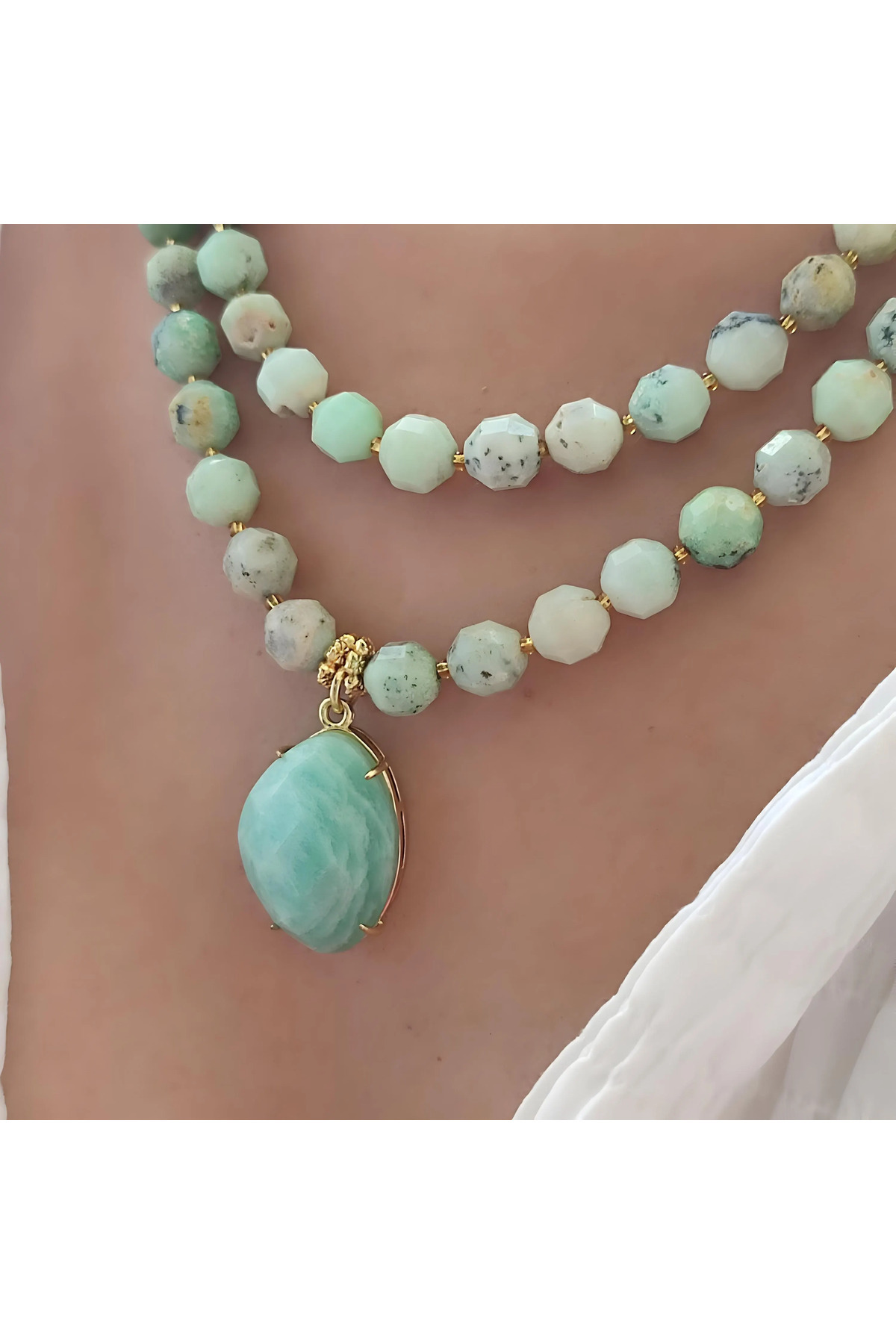 Özel tasarım el yapımı inci opal taşlı kolye doğal taş kolye designer kolye Özel tasarım el yapımı inci opal taşlı kolye doğal taş kolye designer kolye opinci 45 cm