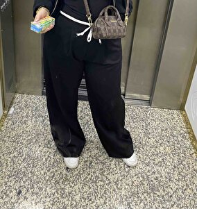 Siyah Çift Bel Bantlı Wide Leg Kadın Pantolon MG2551 Siyah Çift Bel Bantlı Wide Leg Kadın Pantolon MG2551 2XL