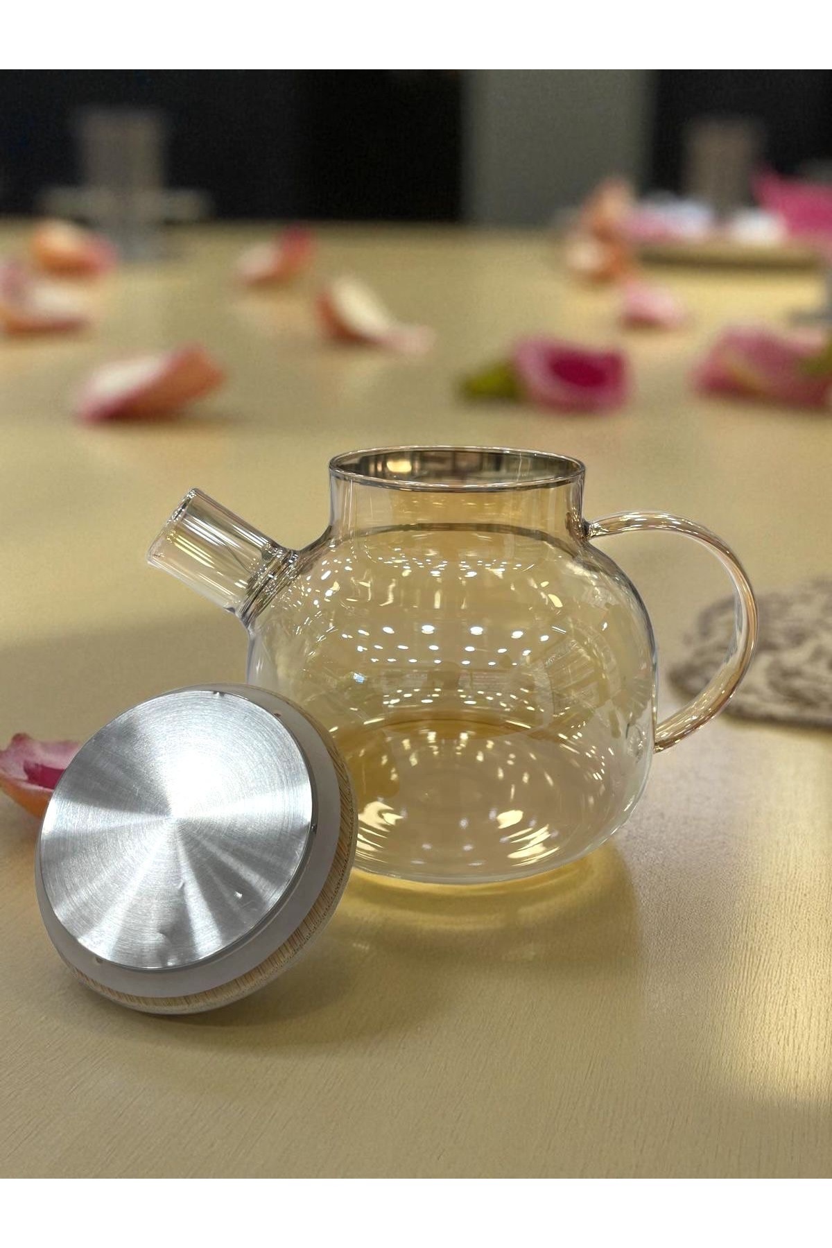 Isıya Dayanıklı Borosilikat Gold Renk Cam Demlik – Bambu & Metal Kapaklı Kulplu, Süzgeçli, 1000 ML Isıya Dayanıklı Borosilikat Gold Renk Cam Demlik – Bambu & Metal Kapaklı Kulplu, Süzgeçli, 1000 ML ALG-11996 تک سایز
