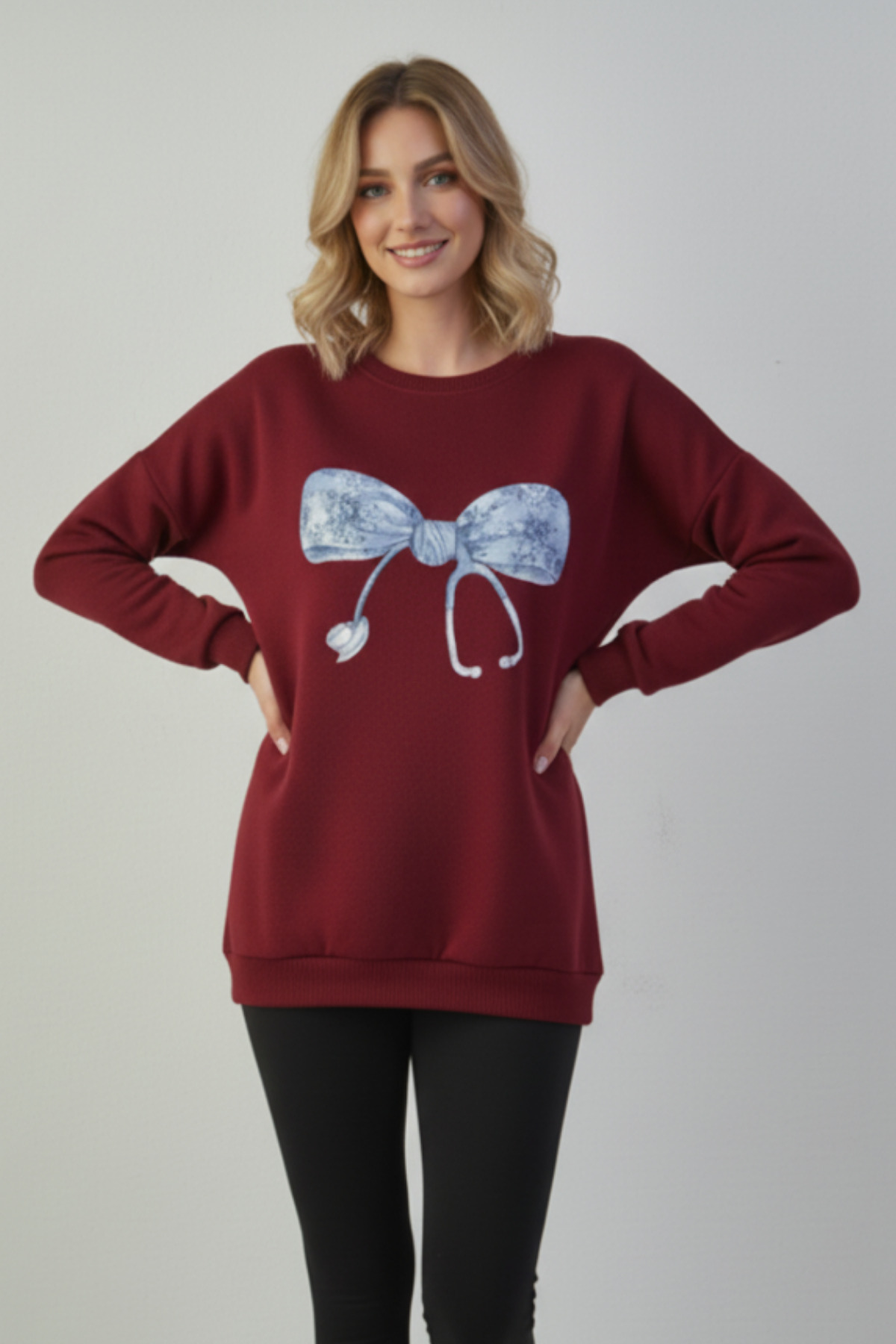 Steteskop Fiyonk Desenli Kadın Sweat Oversize Günlük Rahat Model Steteskop Fiyonk Desenli Kadın Sweat Oversize Günlük Rahat Model CEŞİTLİ-BASKILAR-SWET2 XL
