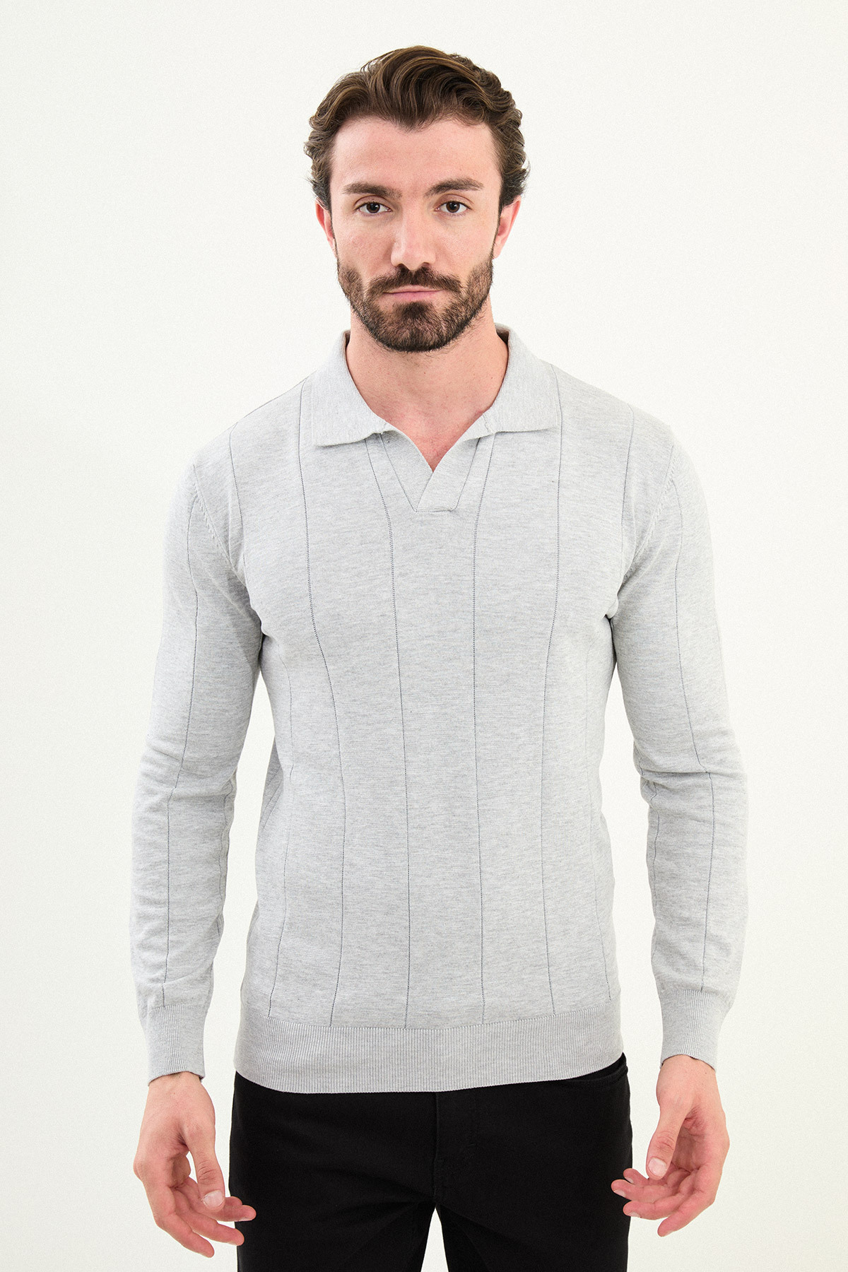 Çizgili Slim Fit Apaç Yaka Erkek Kazak Mavi - 11572.25K Çizgili Slim Fit Apaç Yaka Erkek Kazak Mavi - 11572.25K 2XL
