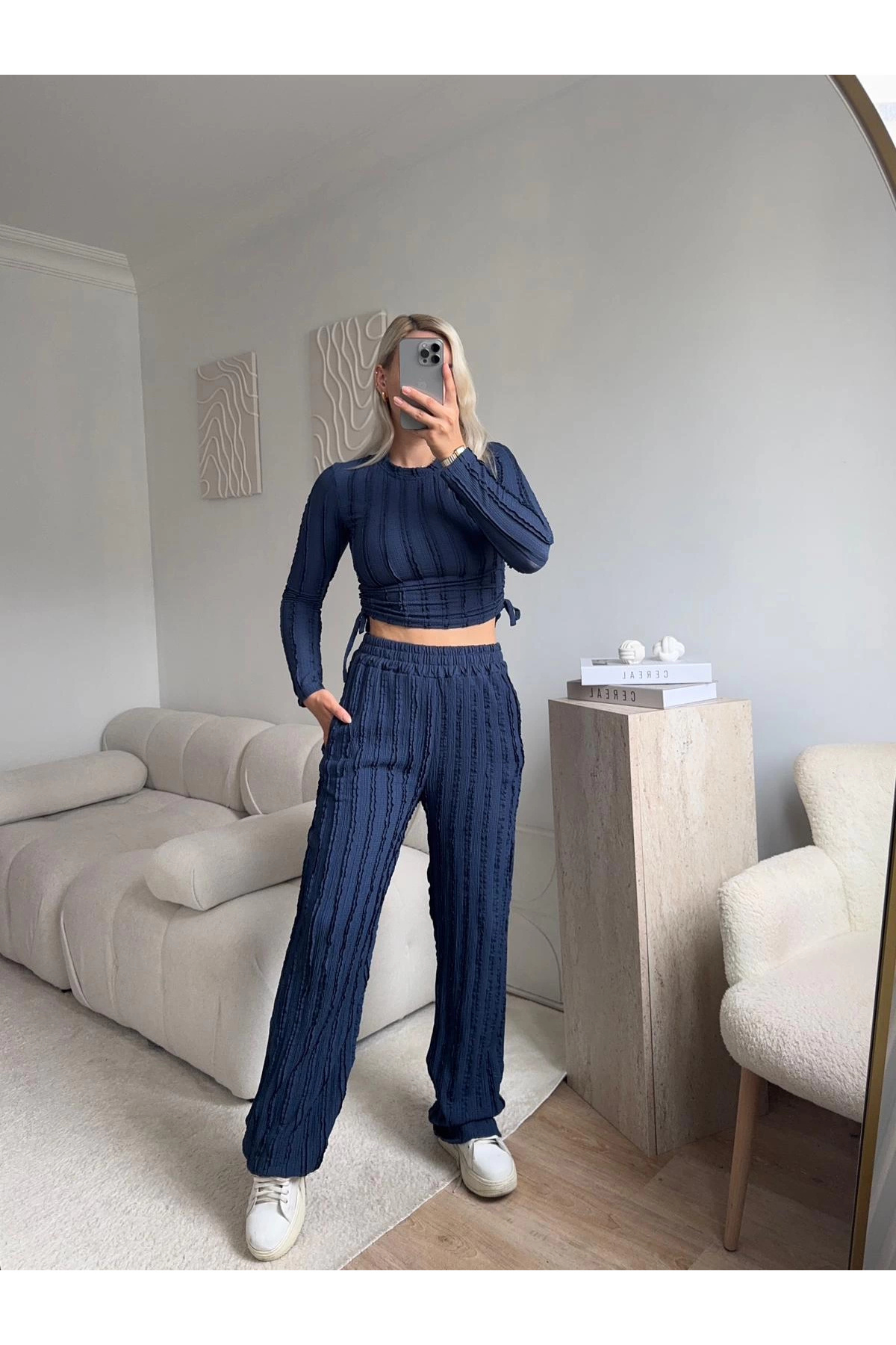 Oversize Gömlek & Pantolon Takım - LACİVERT Oversize Gömlek & Pantolon Takım - LACİVERT P3920S5473 L