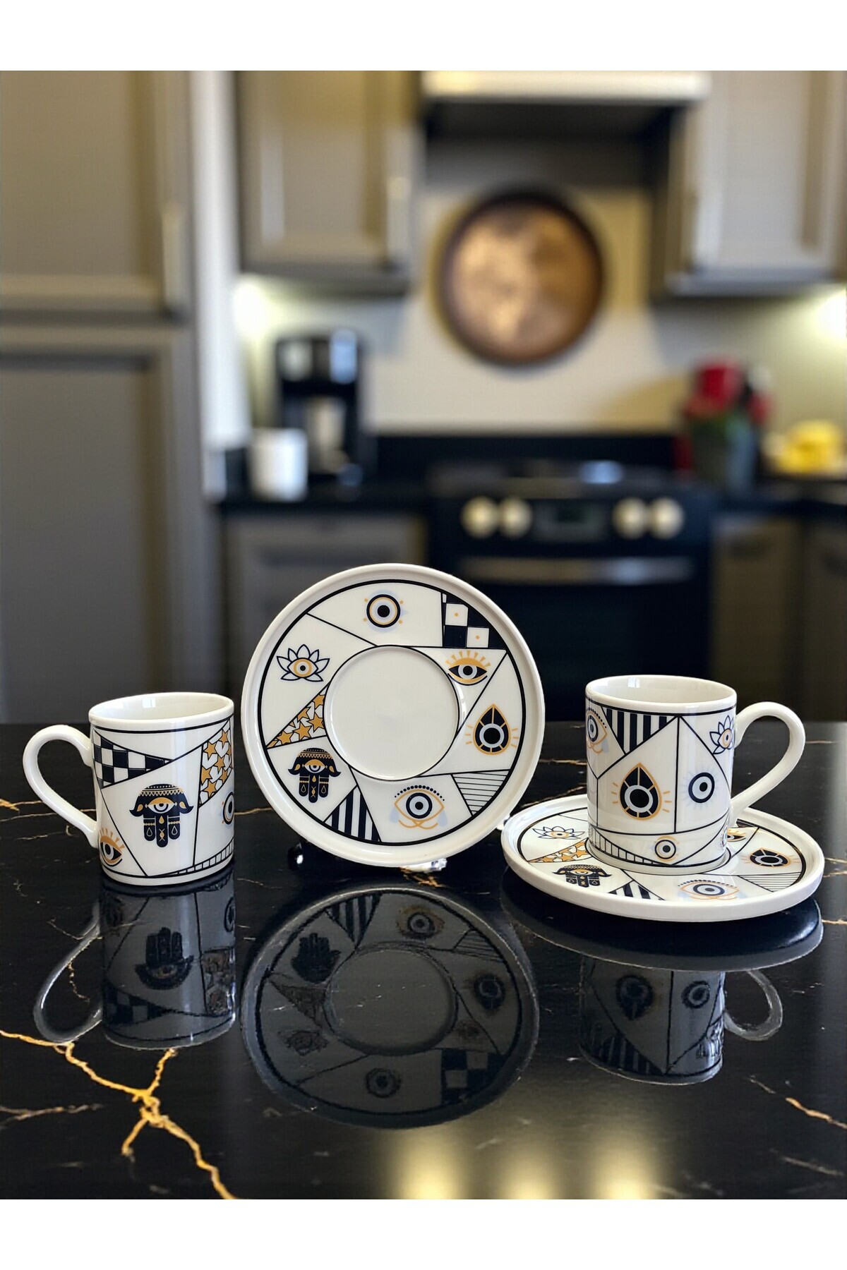 Porselen Kahve Fincan Seti 6 Kişilik Hamse Desen - Feray Home Porselen Kahve Fincan Seti 6 Kişilik Hamse Desen - Feray Home K2045 تک سایز