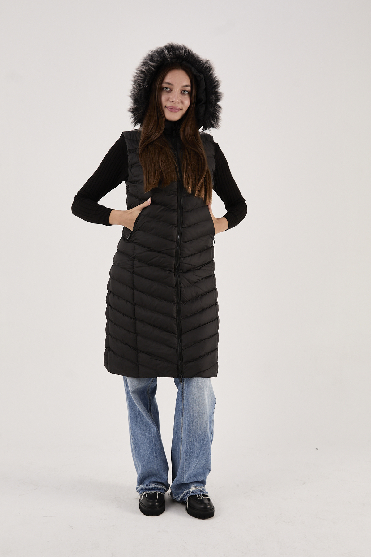 Kadın Kapüşonlu Uzun Kapitone Yelek Kadın Kapüşonlu Uzun Kapitone Yelek TAREM7 42
