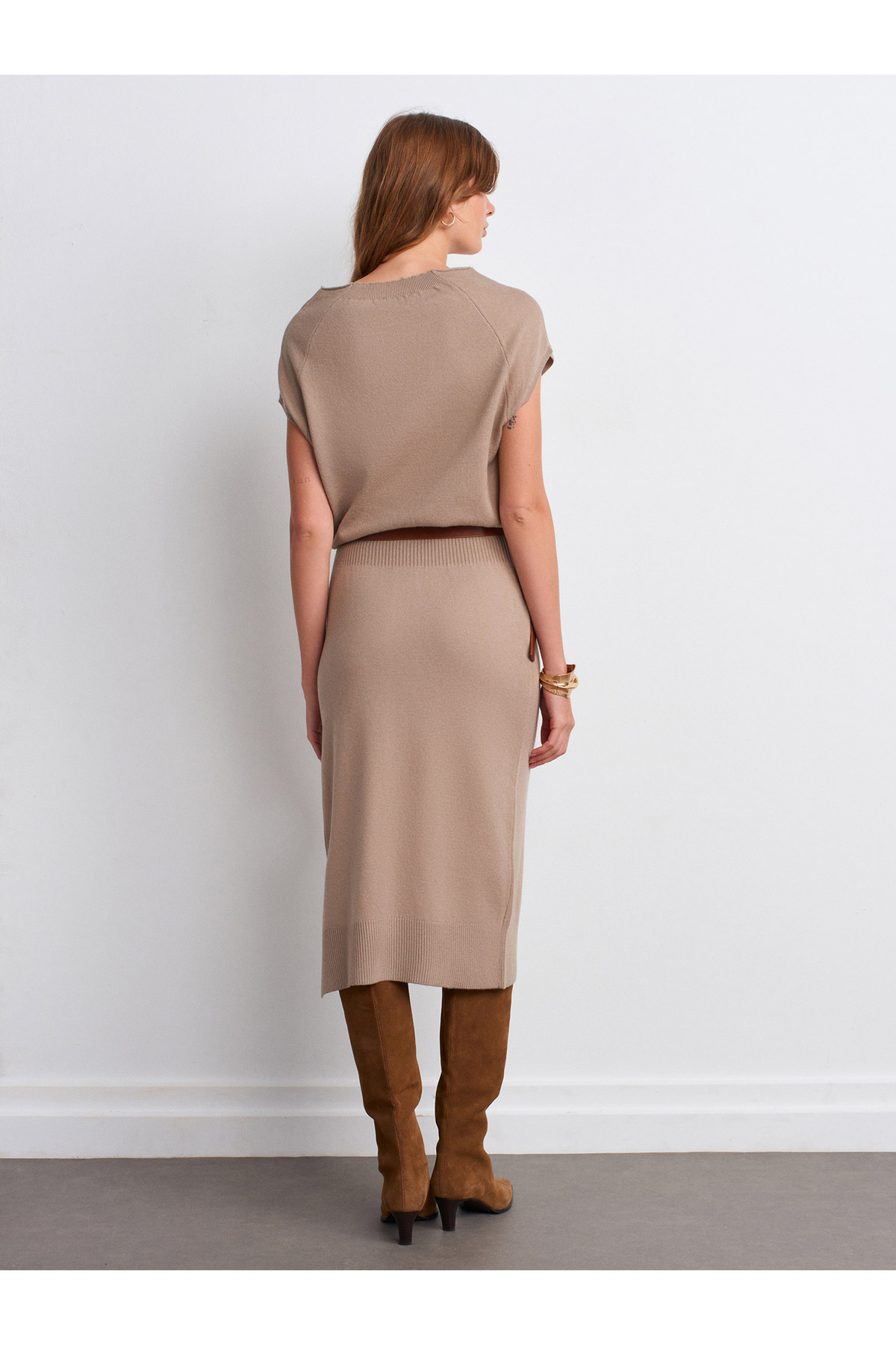90256 Yünlü Karışımlı Kemerli Triko Elbise-K.Vizon M. 90256 Yünlü Karışımlı Kemerli Triko Elbise-K.Vizon M. 101A90256 Standart