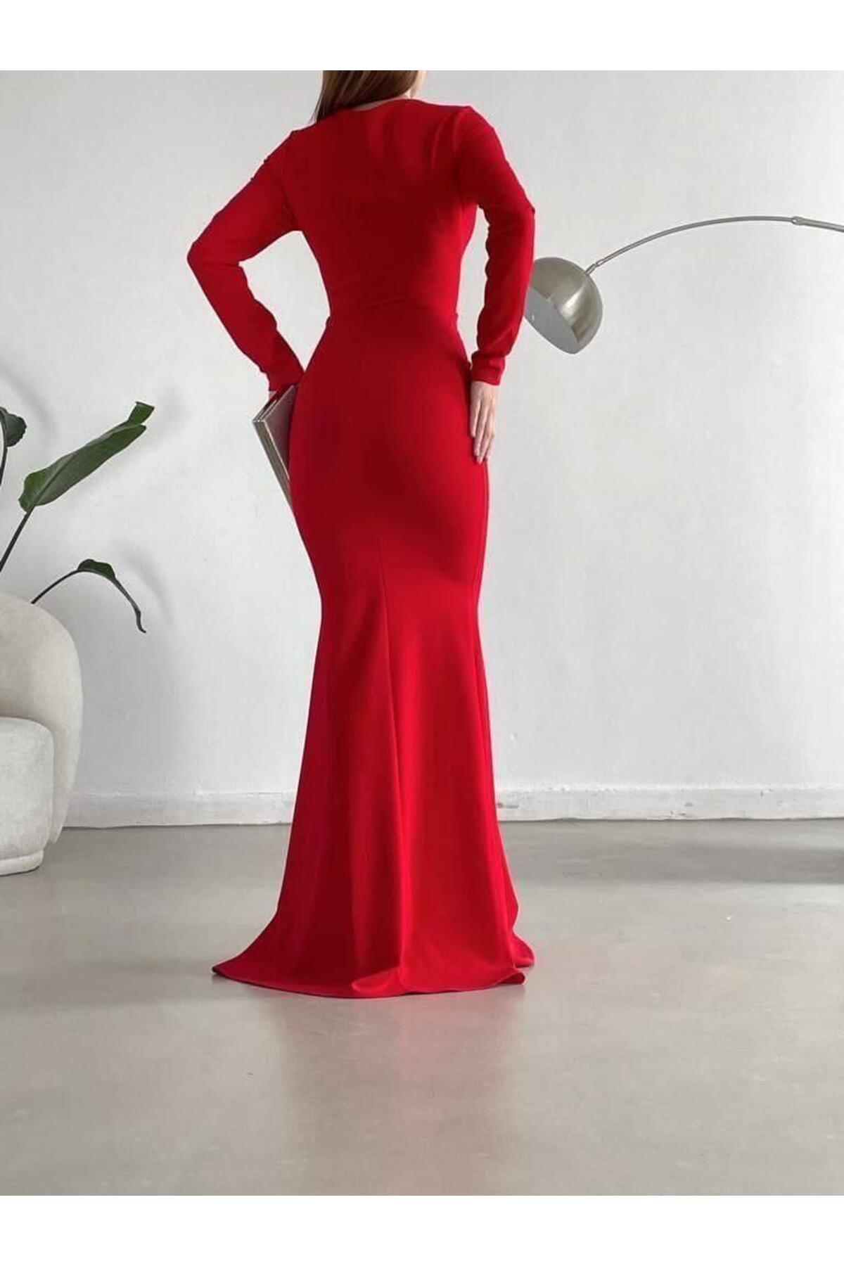 V Yaka Yırtmacı Volan Detaylı Esnek Krep Kumaş Uzun Abiye Elbise 581843 KIRMIZI V Yaka Yırtmacı Volan Detaylı Esnek Krep Kumaş Uzun Abiye Elbise 581843 KIRMIZI L