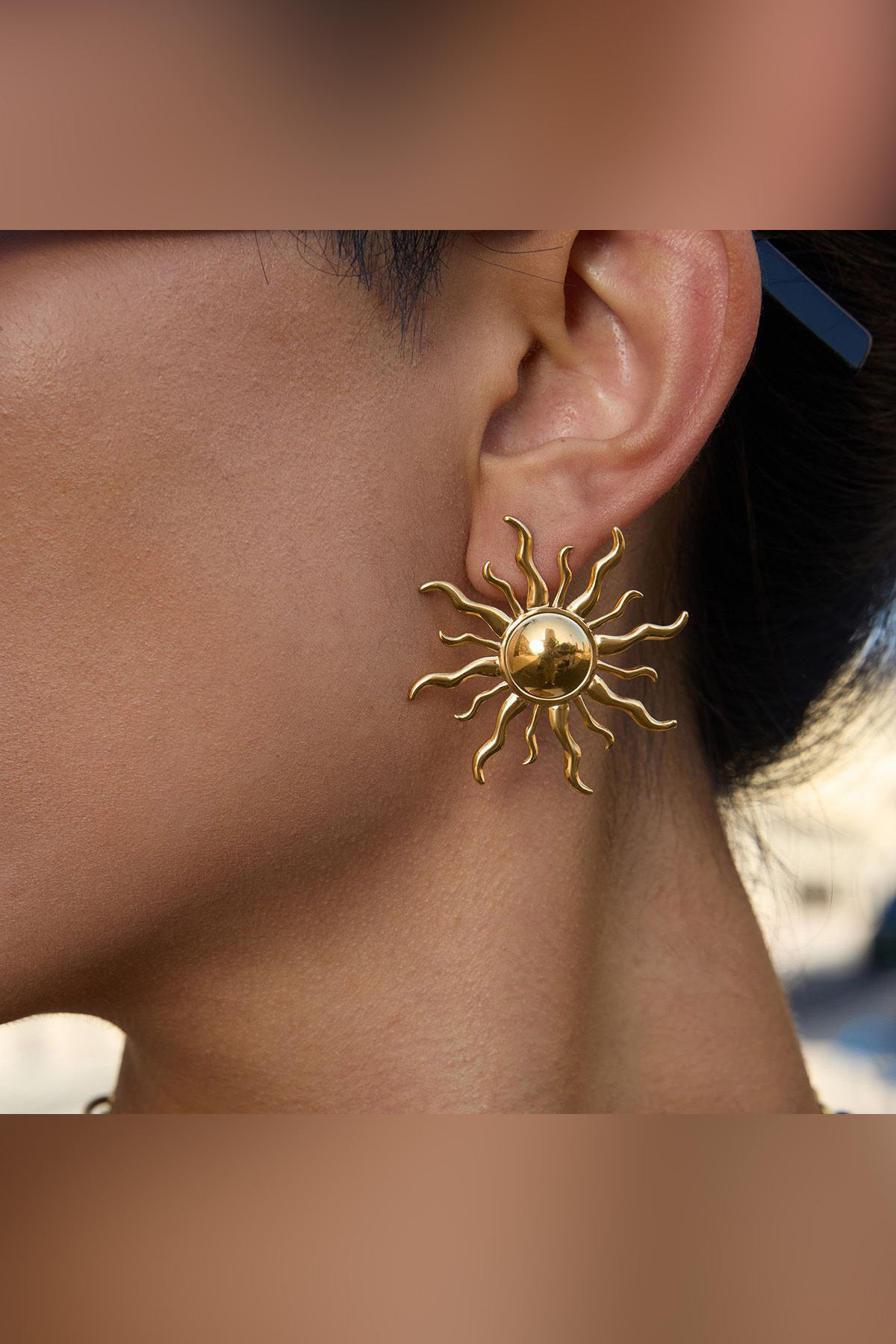 Güneş Işıltısı Tasarımlı Gold Güneş Küpe Güneş Işıltısı Tasarımlı Gold Güneş Küpe THE4SCW5 تک سایز