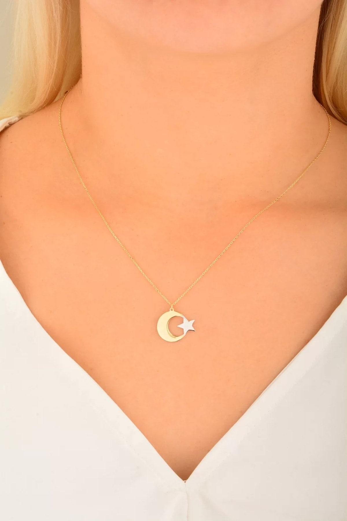 Altın Ay Yıldız Kolye Uçlu Zincir Altın Ay Yıldız Kolye Uçlu Zincir 28249 45 cm