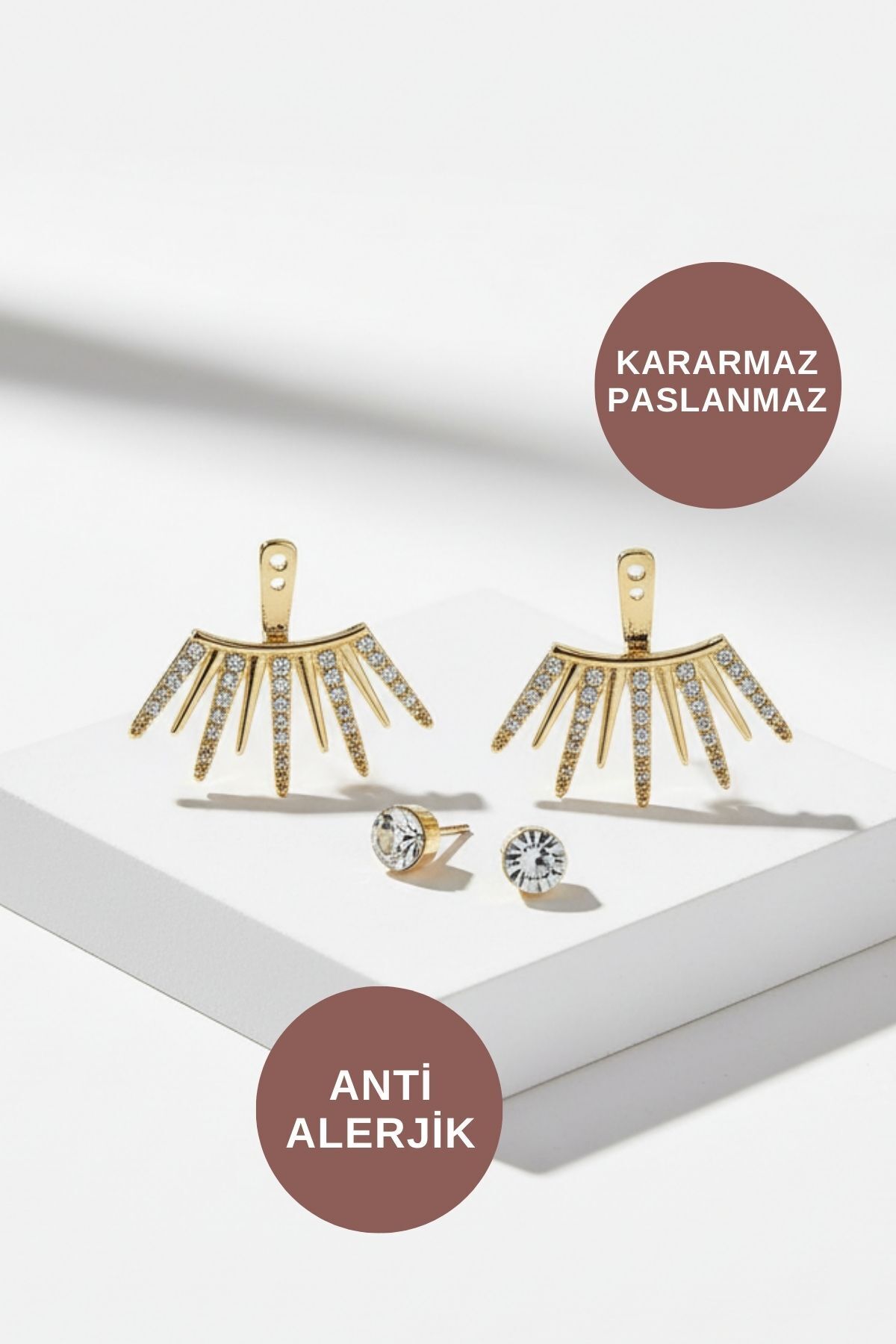 Çelik ithal gümüş renk zirkon taşlı marka model tarz küpe Çelik ithal gümüş renk zirkon taşlı marka model tarz küpe dndk754 تک سایز
