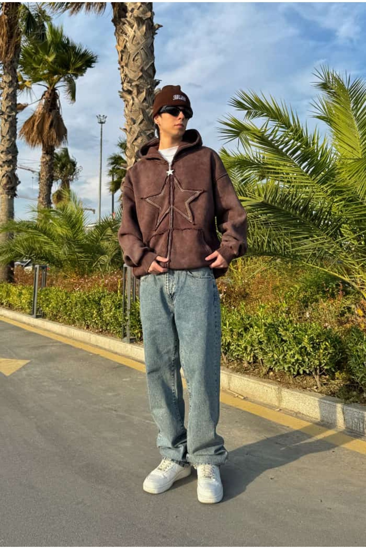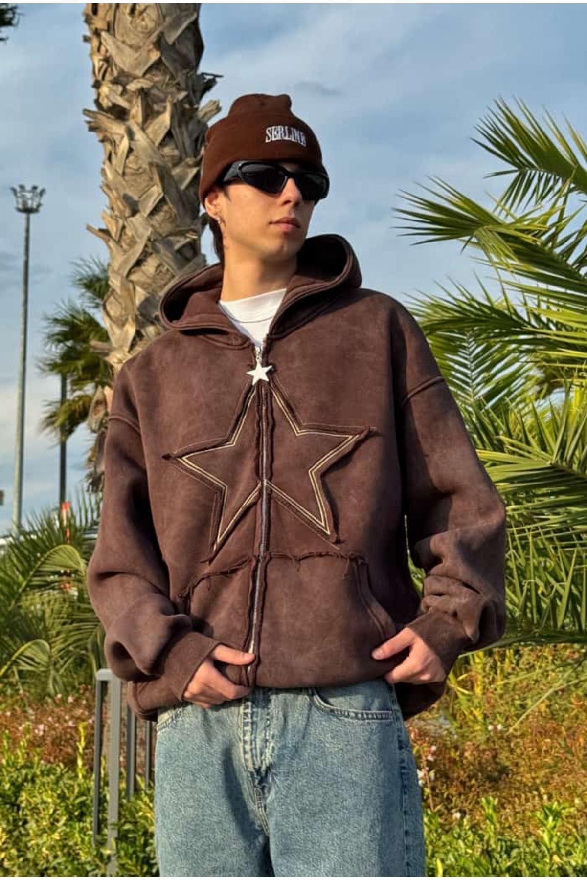 Premium Acid Wash Star Nakış Oversize Zip Premium Acid Wash Star Nakış Oversize Zip STR001 XL