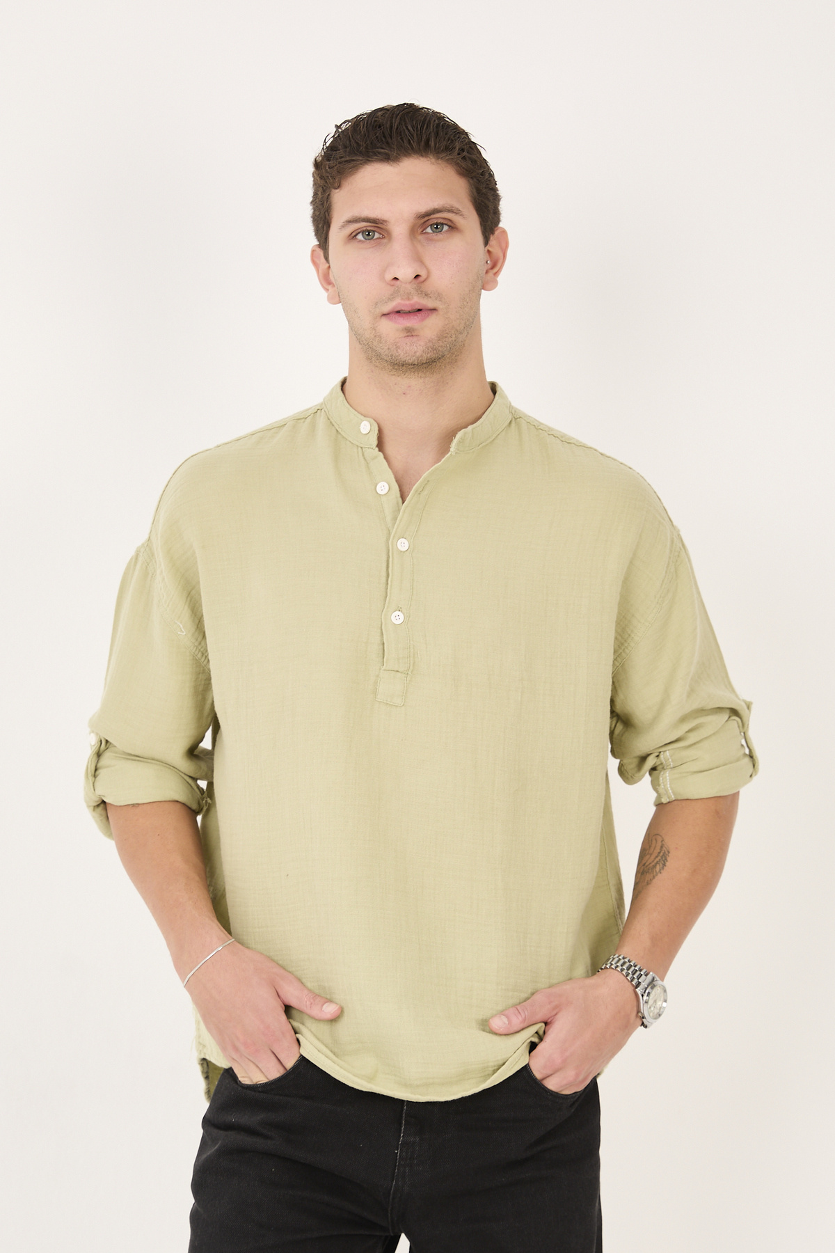 Erkek Regular Fit %100 Pamuk Müslin Hakim Yaka Yarım Pat Gömlek Erkek Regular Fit %100 Pamuk Müslin Hakim Yaka Yarım Pat Gömlek 251070 XL