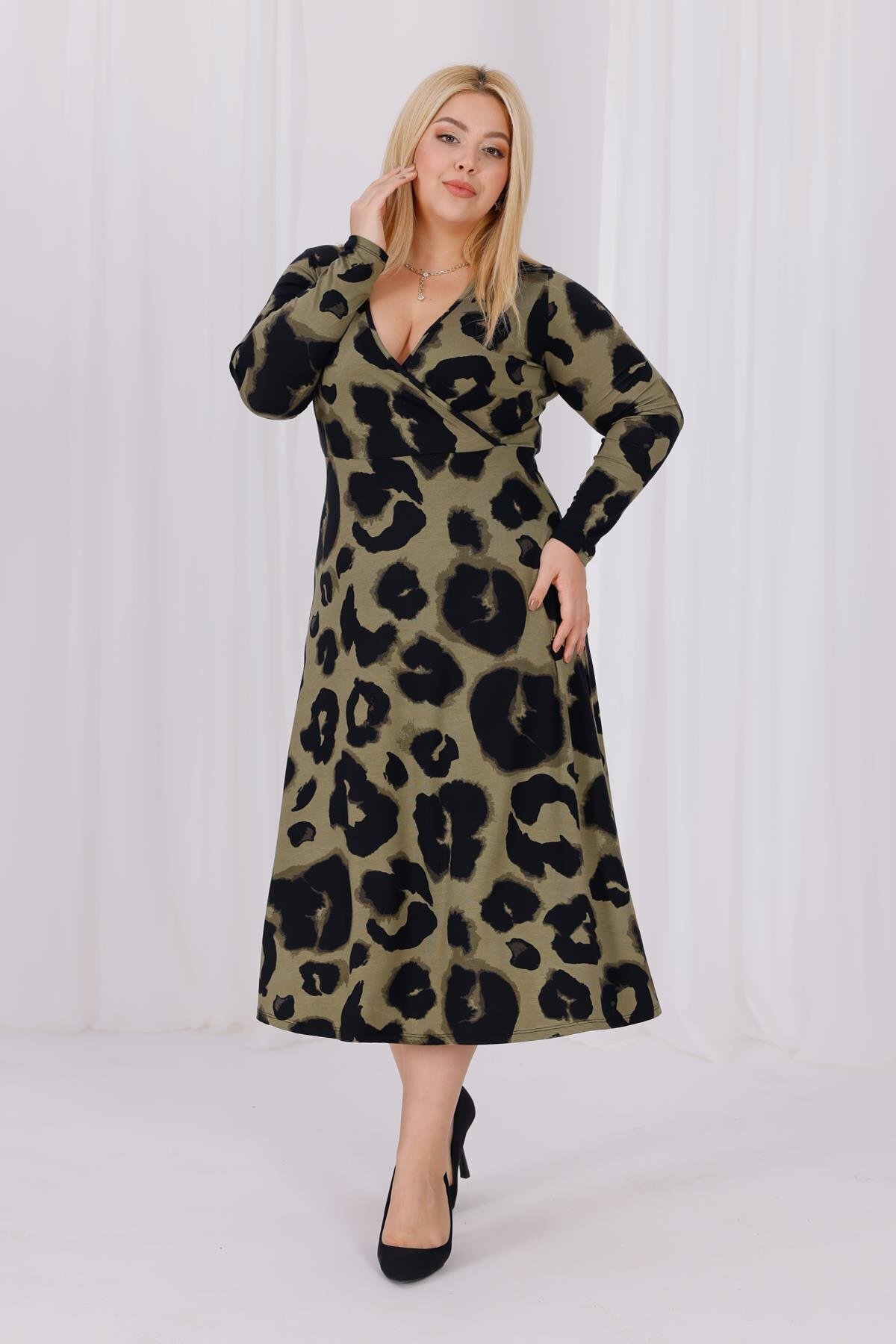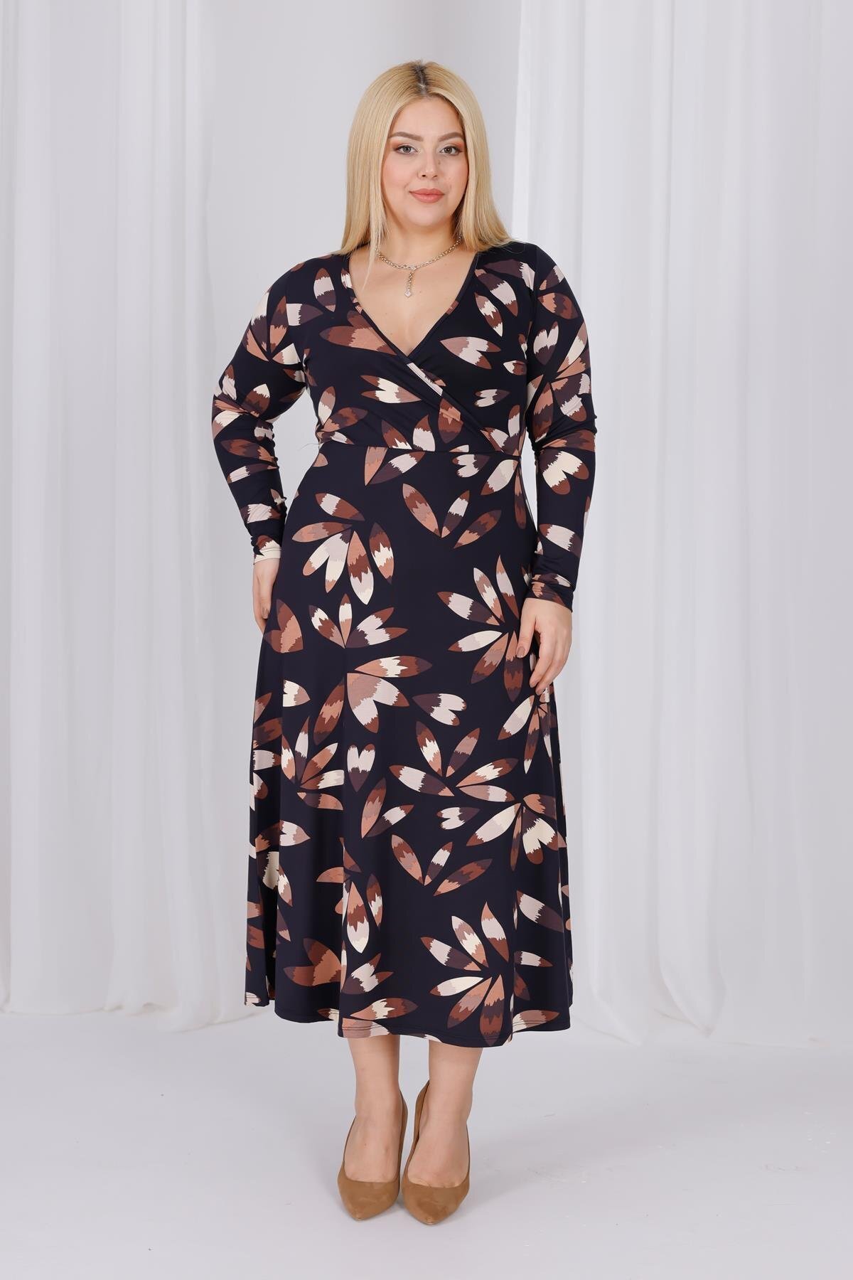 Kadın Kahve Siyah Yılan Desen Kruvaze Yaka Büyük Beden Esnek Maxi Elbise Kadın Kahve Siyah Yılan Desen Kruvaze Yaka Büyük Beden Esnek Maxi Elbise MW2601101 52-54