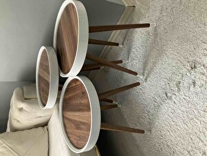 Ahşap 3'lü Yuvarlak Ceviz Polen Lüx Ayaklı Zigon Sehpa Ahşap 3'lü Yuvarlak Ceviz Polen Lüx Ayaklı Zigon Sehpa c8 تک سایز