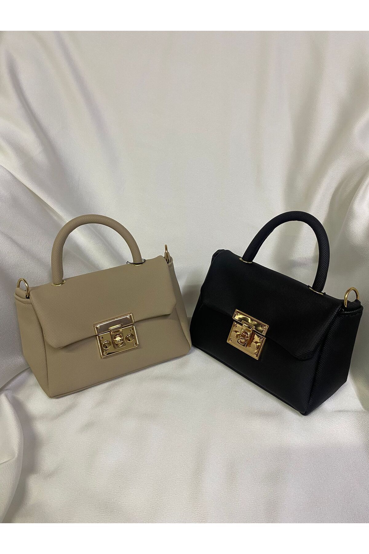 Altın Toka Kilit Modelli Şık Omuz Çantası Altın Toka Kilit Modelli Şık Omuz Çantası nurem-LV1 Standart