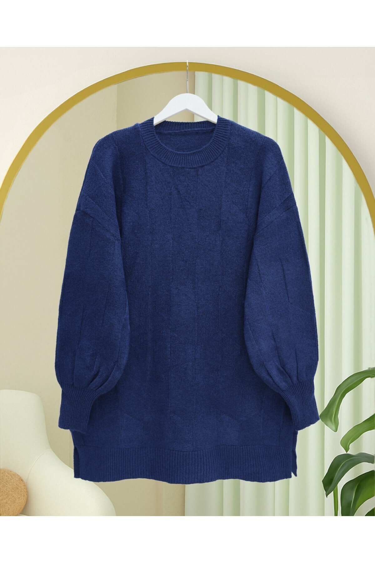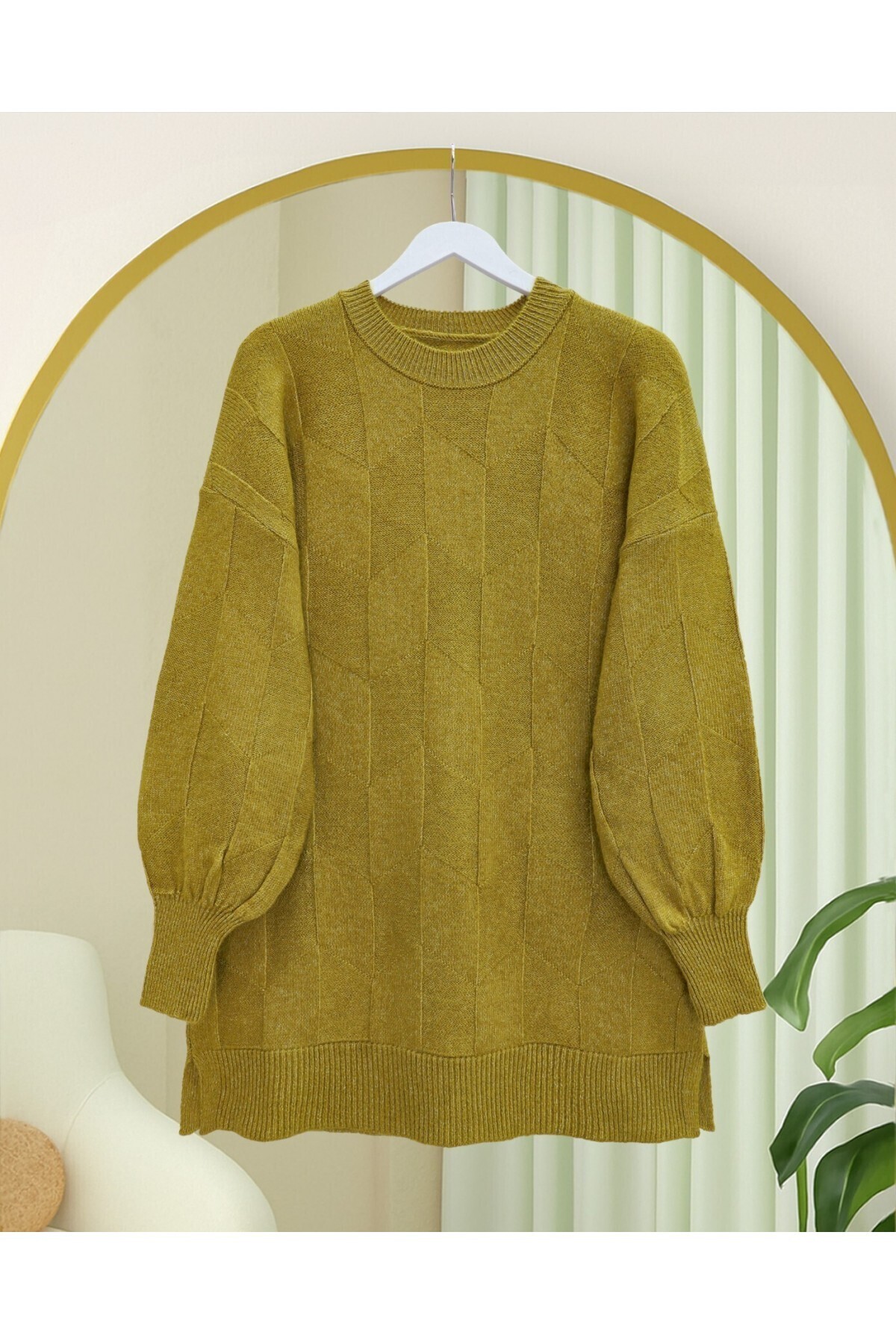 Yuvarlak Yaka Salaş Desenli Triko Kazak -Toprak Yuvarlak Yaka Salaş Desenli Triko Kazak -Toprak TY295-4514 Standart