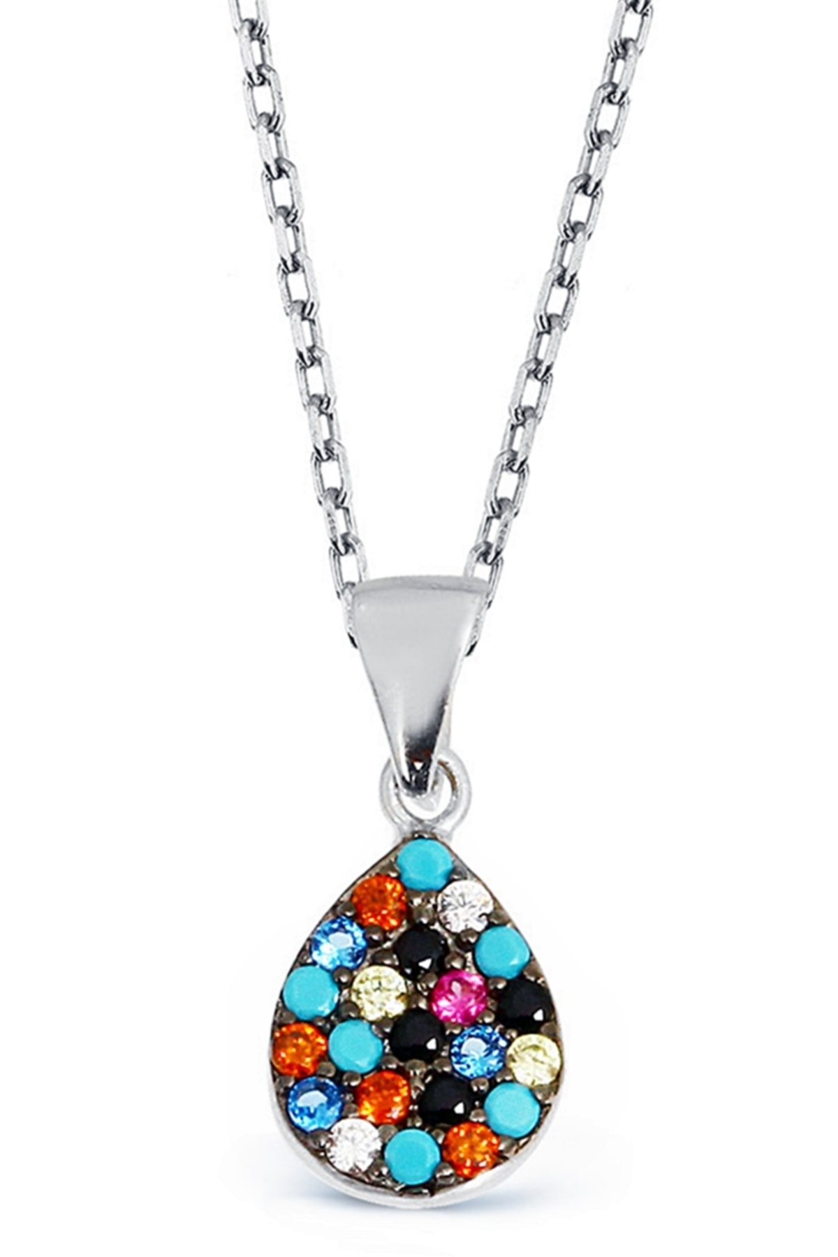925 Ayar Gümüş Renkli Taşlı Kelebek Kolye - N075101 925 Ayar Gümüş Renkli Taşlı Kelebek Kolye - N075101 تک سایز