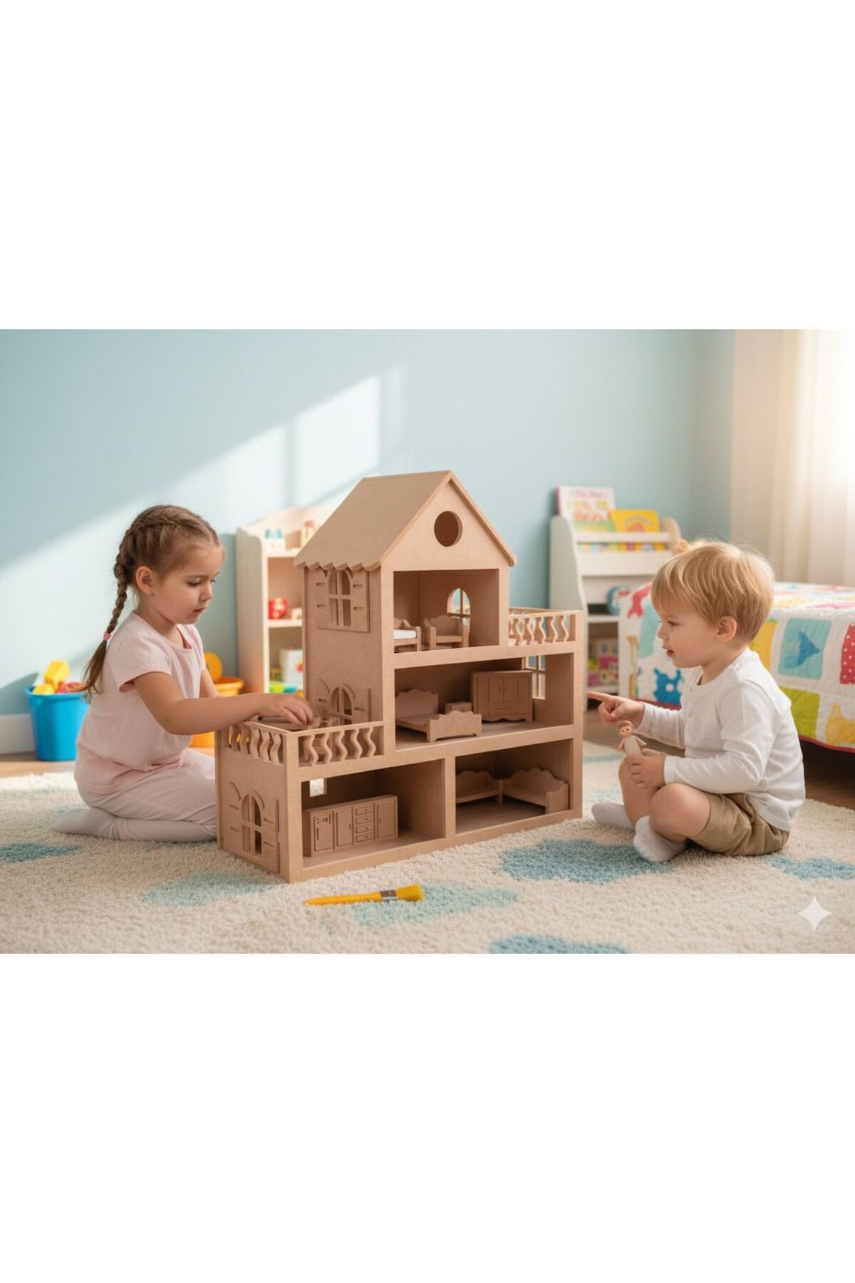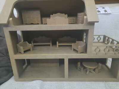 Ahşap Oyuncak Barbie Evi + Ahşap Minyatür Oyuncak Mobilya Takımı Ahşap Oyuncak Barbie Evi + Ahşap Minyatür Oyuncak Mobilya Takımı ÖBE03 تک سایز