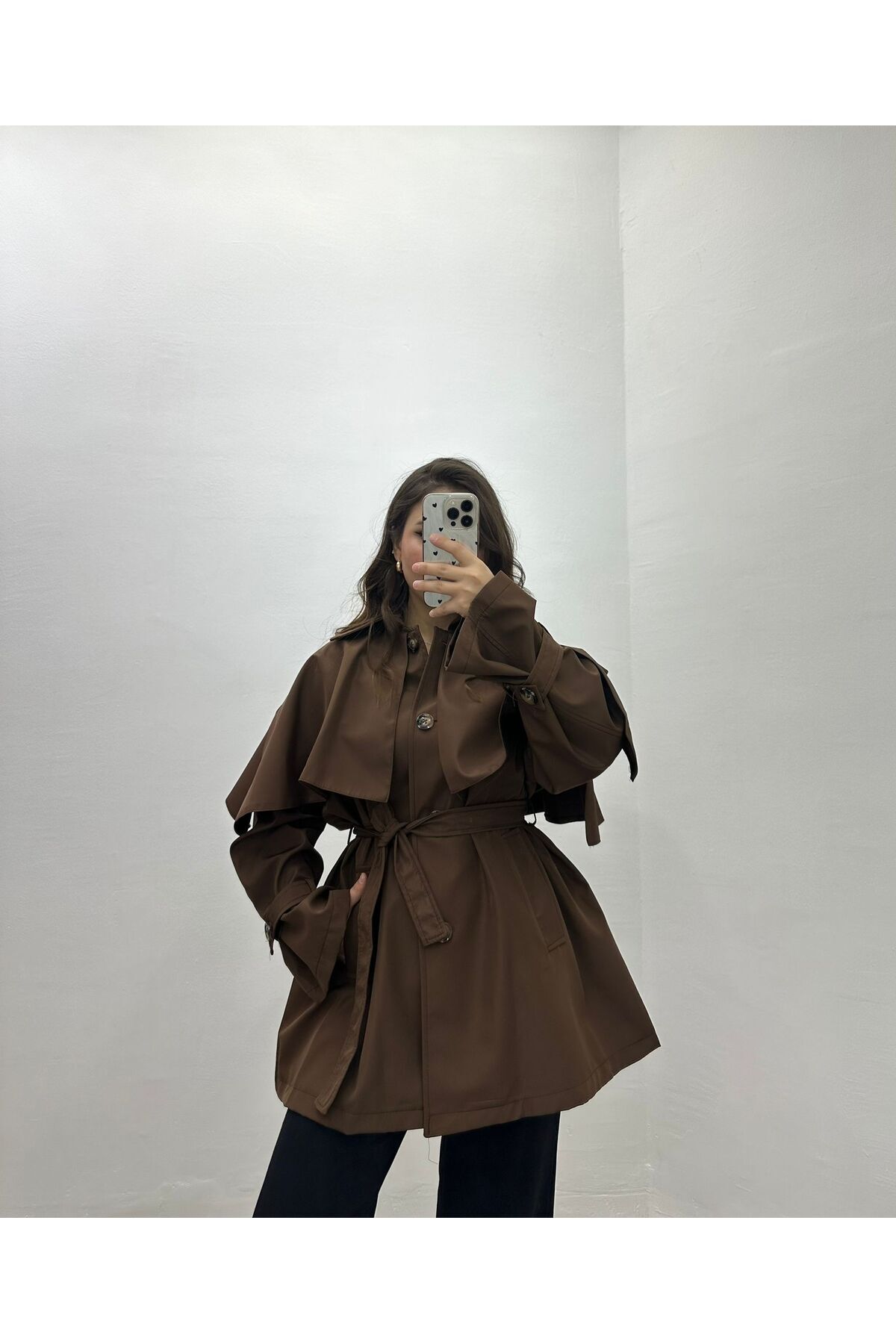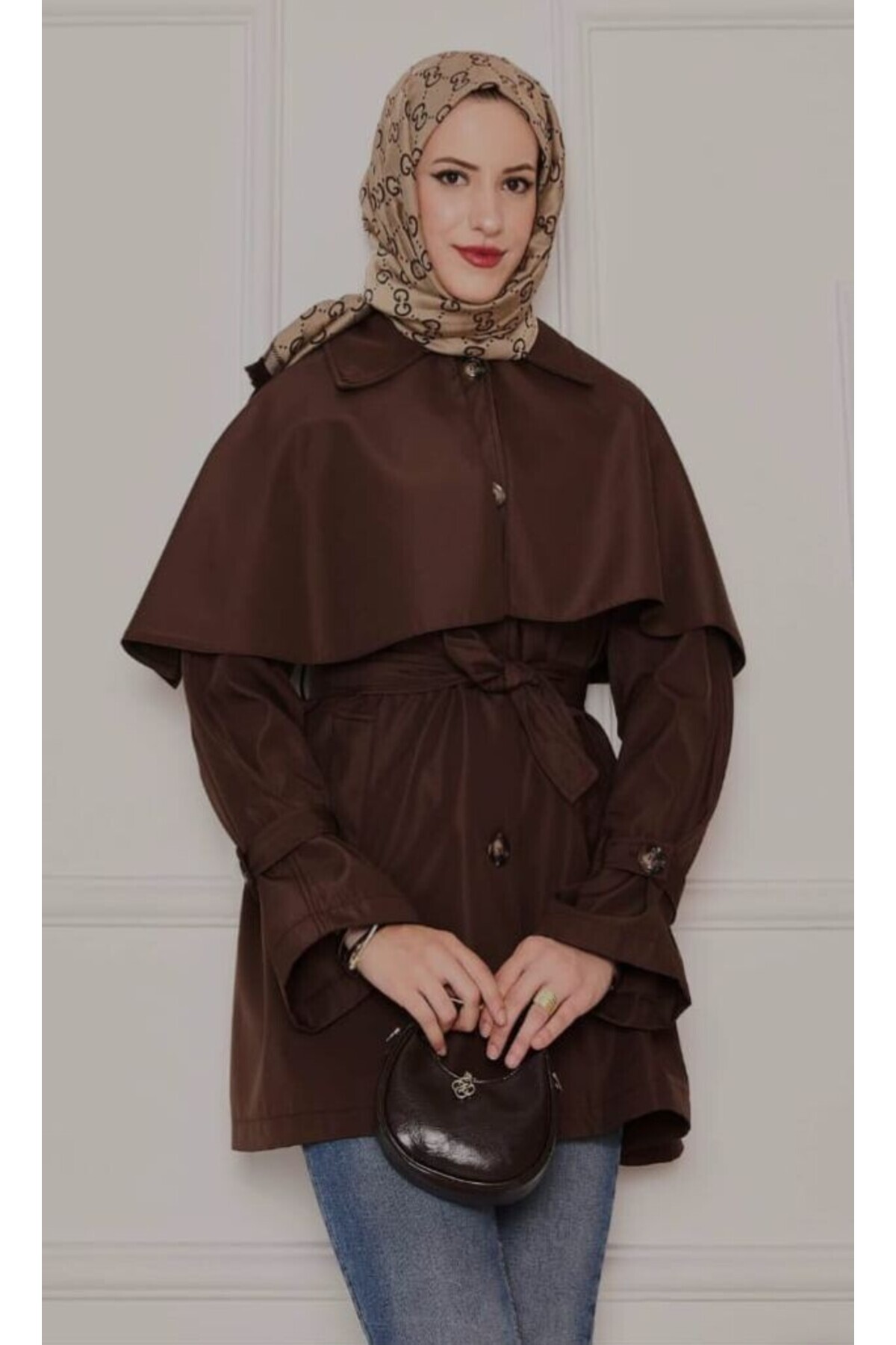 Kadın Pelerin Model Kuşaklı Trençkot Kadın Pelerin Model Kuşaklı Trençkot nur50176 Standart
