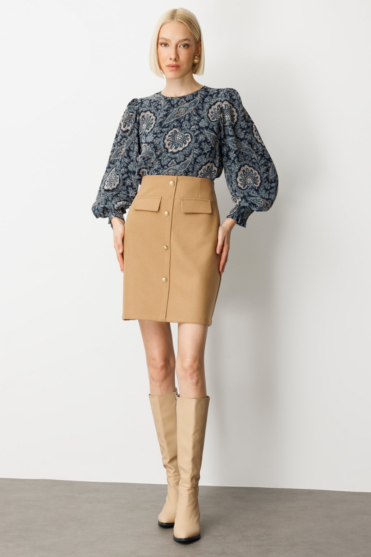 Aksesuar Detaylı Mini Kaşe Etek Aksesuar Detaylı Mini Kaşe Etek 26K.EKL.ETK.02003.1 42