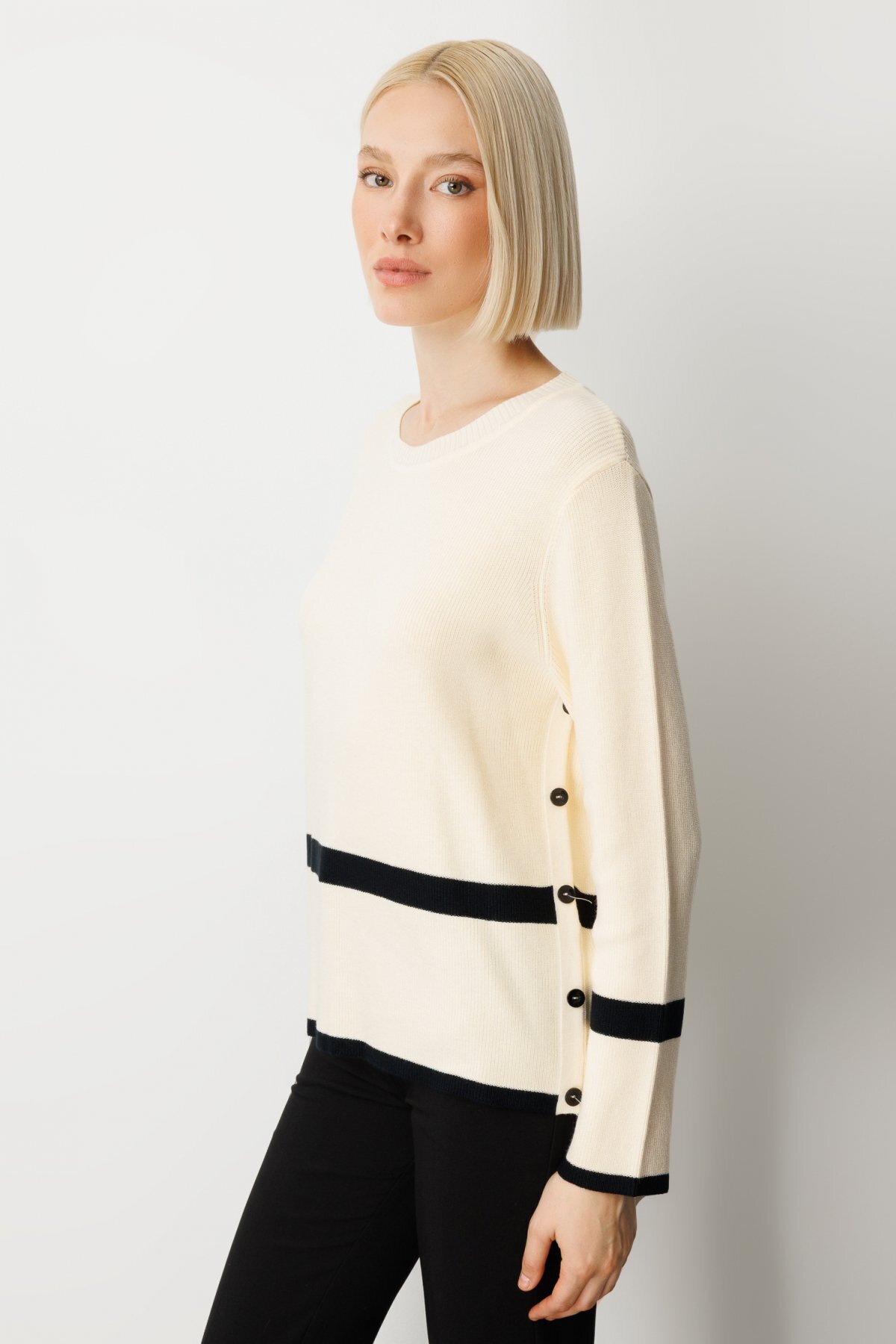Yanları Düğmeli Örme Kazak Yanları Düğmeli Örme Kazak 26K.ON.KZK.65369.01 L