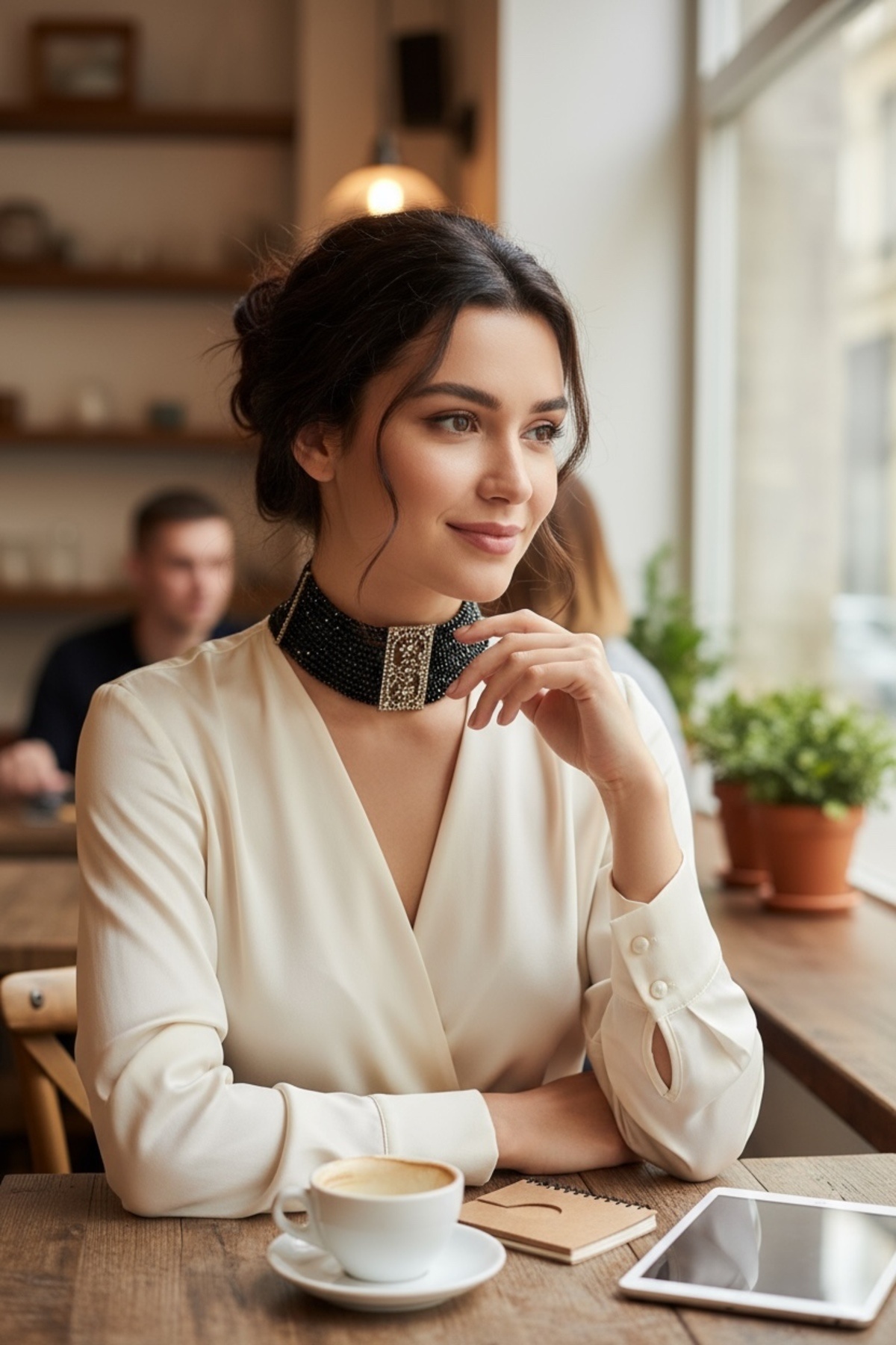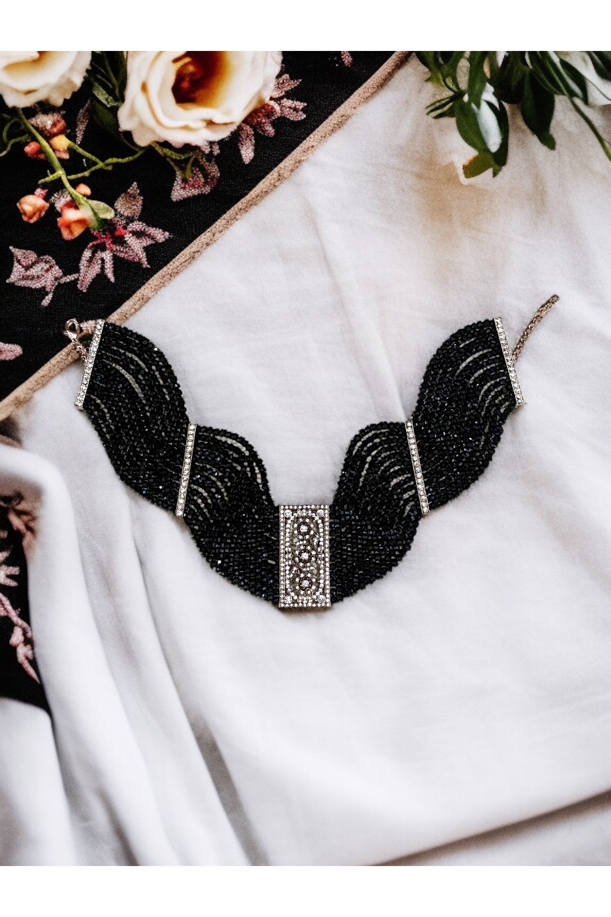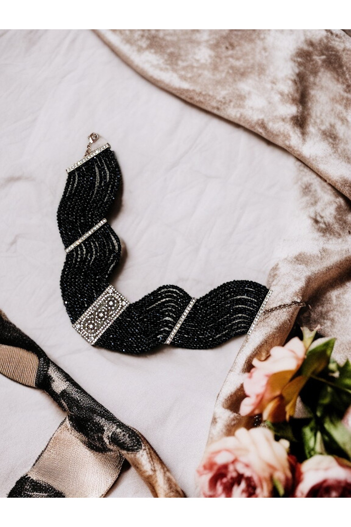 Kristal Taşlı Hasır Dizim Oniks Taşlı Tasma Kolye Kristal Taşlı Hasır Dizim Oniks Taşlı Tasma Kolye FAYRA-A4924KLY-SYH تک سایز