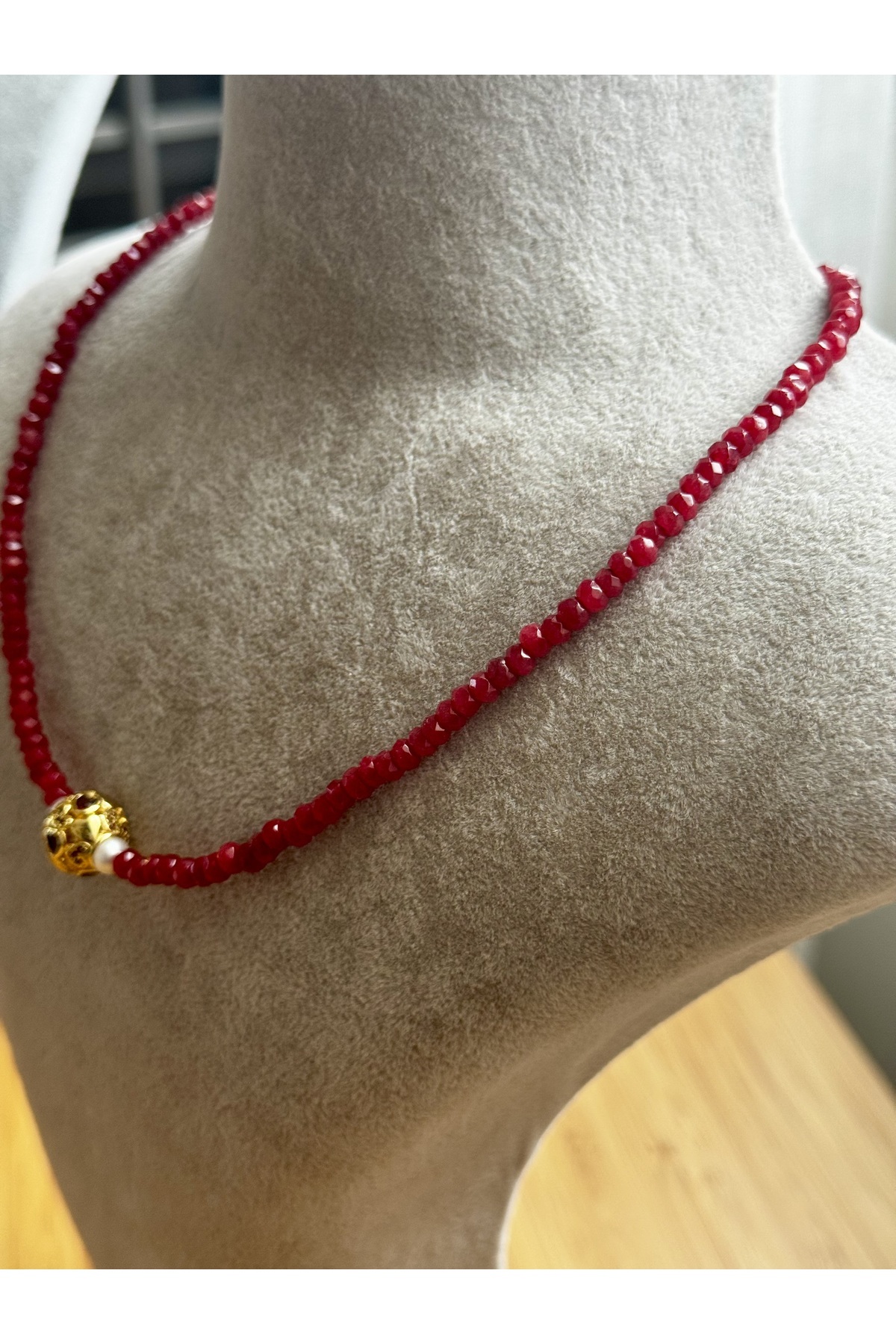 Yakut doğaltaşlı ve incili 925 ayar uçlu kolye Yakut doğaltaşlı ve incili 925 ayar uçlu kolye 19461966 تک سایز