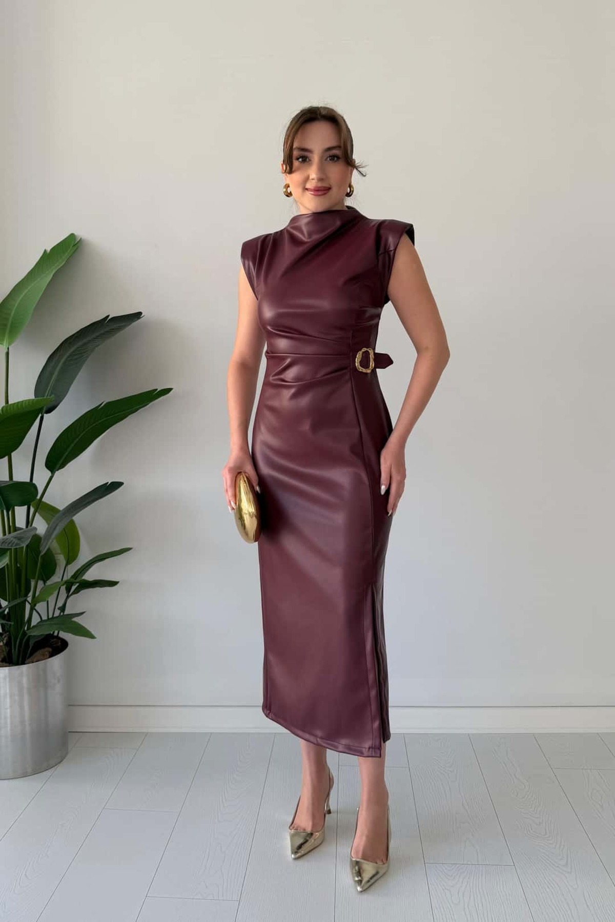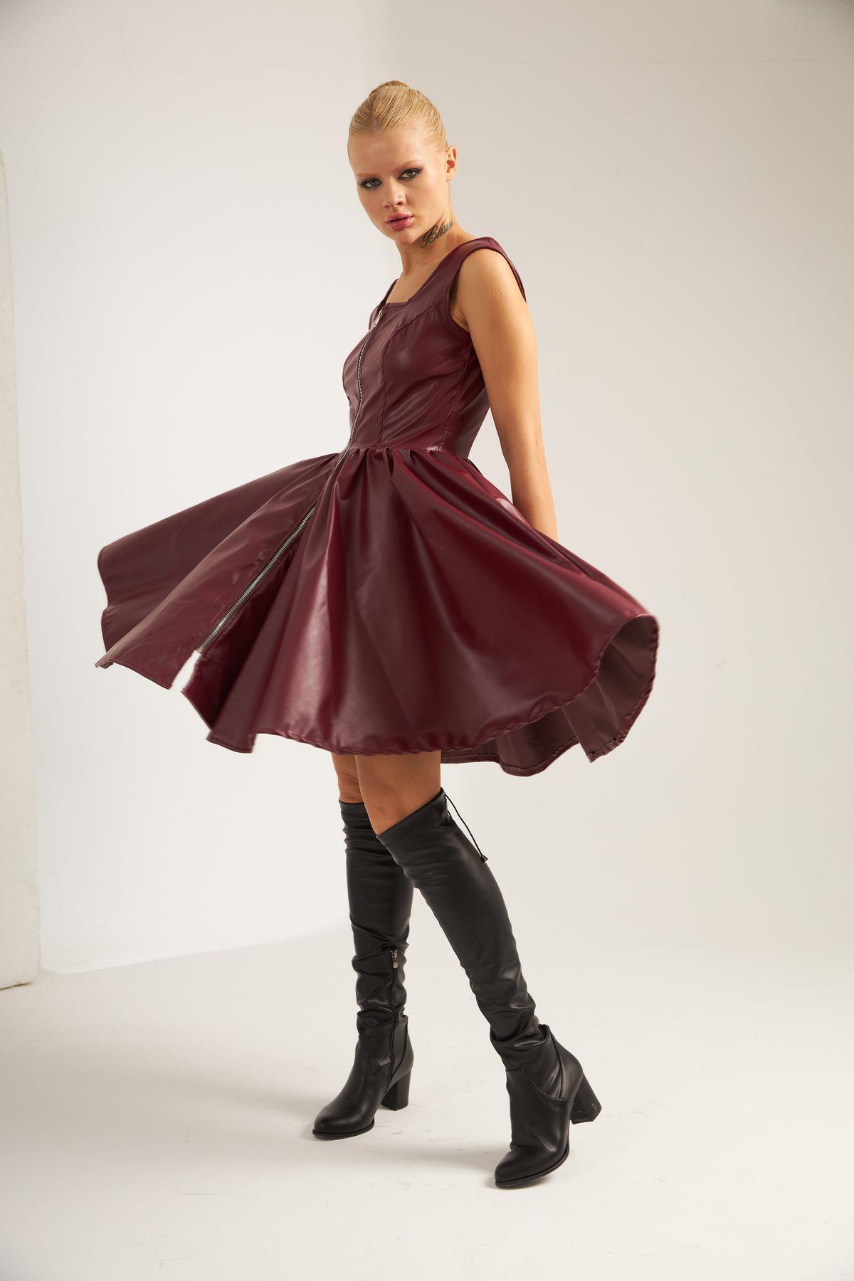 Tokalı Deri Elbise Tokalı Deri Elbise 13651_Bordo_M XL