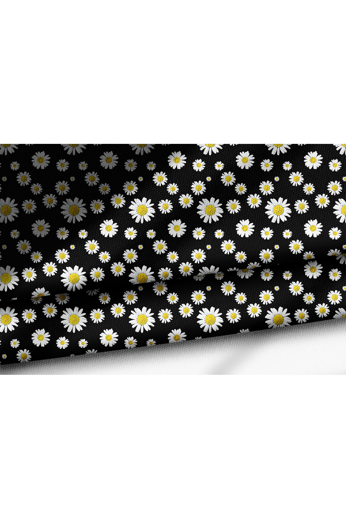 Siyah Zemin Realistik Papatya Desenli Baskılı Kumaş Siyah Zemin Realistik Papatya Desenli Baskılı Kumaş NK421 تک سایز