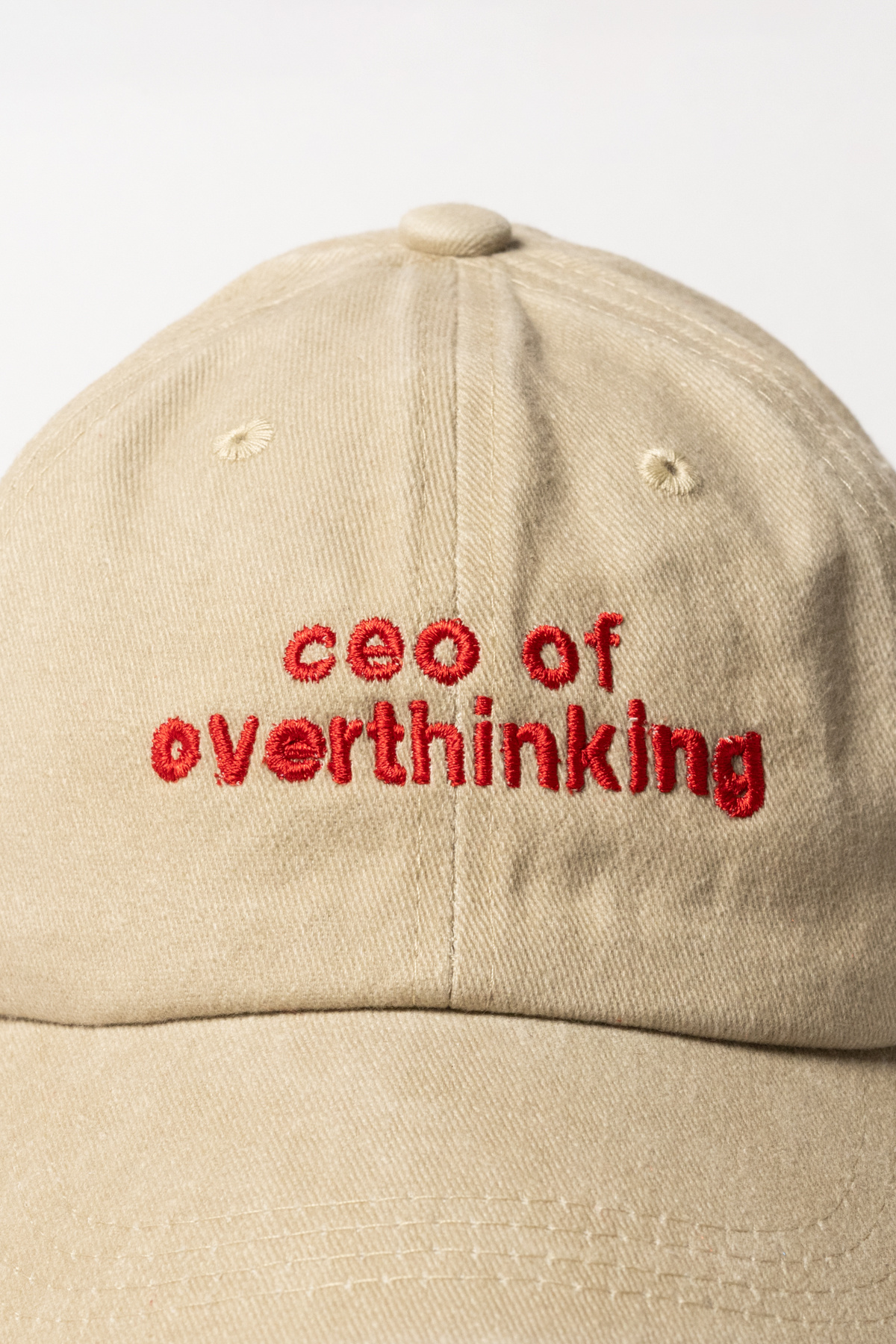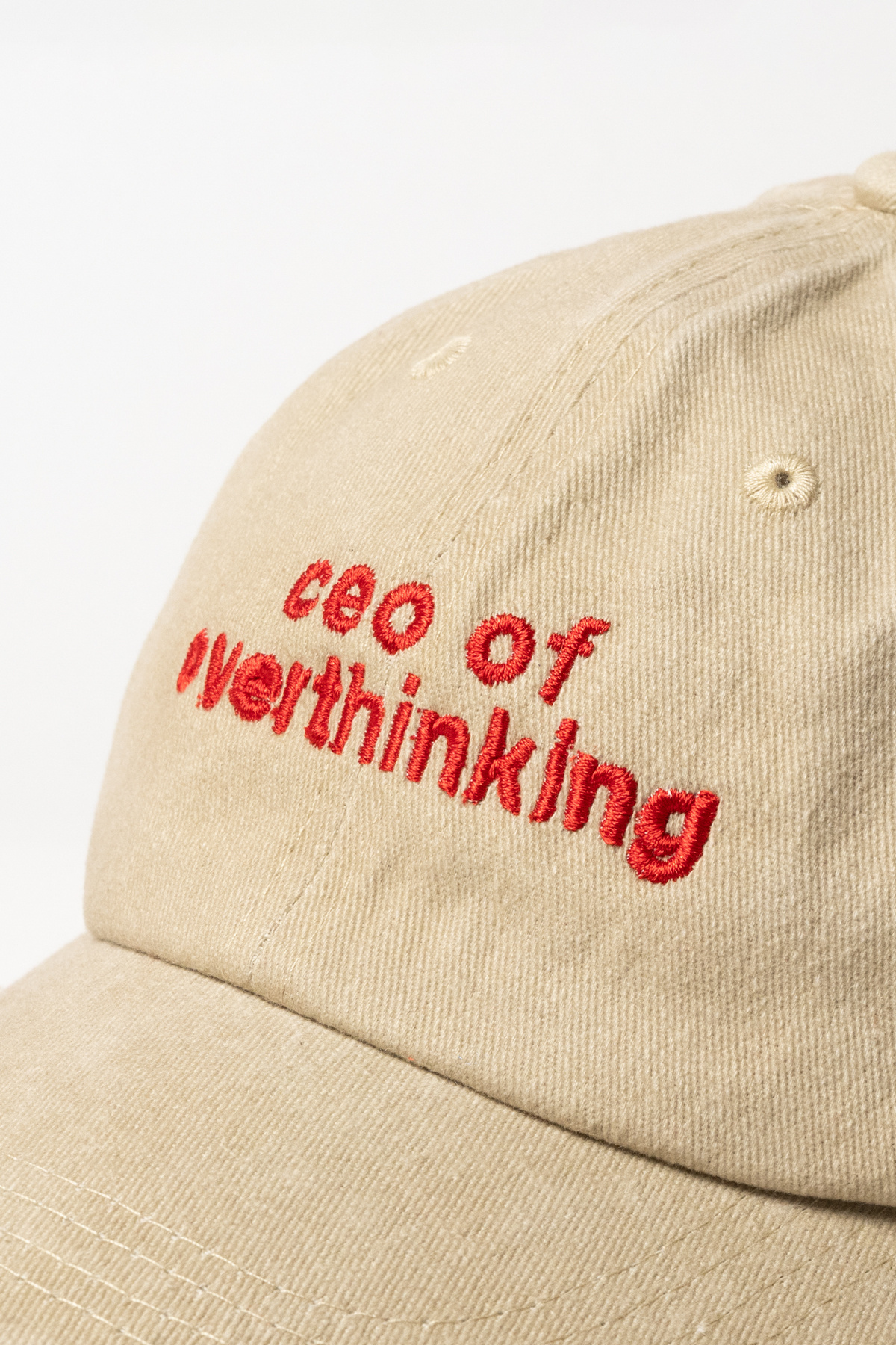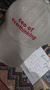 Nakışlı Bej Şapka Kumaşlı ve Kırmızı Yeşil Yazı Nakışlı Şapka Pamuklu Yıkamalı kumaşlı ayarlı Nakışlı Bej Şapka Kumaşlı ve Kırmızı Yeşil Yazı Nakışlı Şapka Pamuklu Yıkamalı kumaşlı ayarlı “Ceo of overthinking” Yazılı Bej Şapka Standart