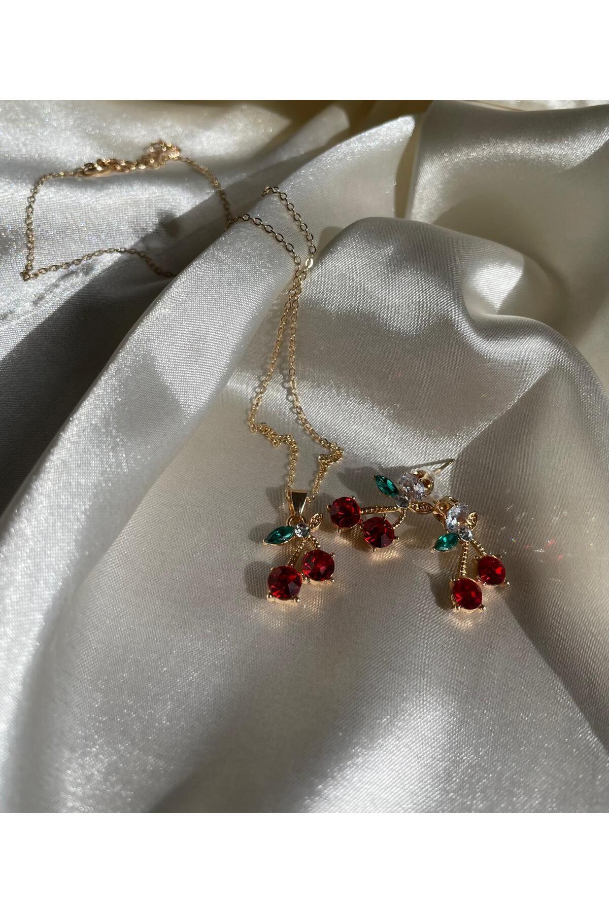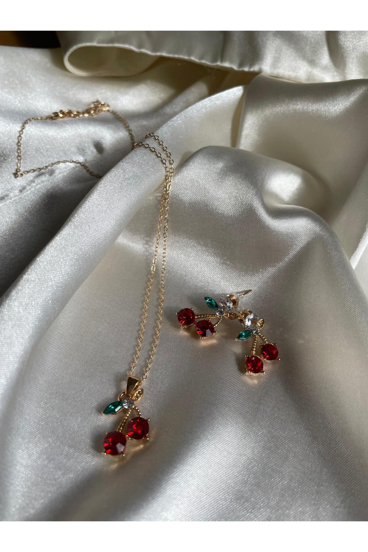 Taşlı Kiraz Küpe Kolye Takımı Taşlı Kiraz Küpe Kolye Takımı KolyeKüpe-3500 46 cm