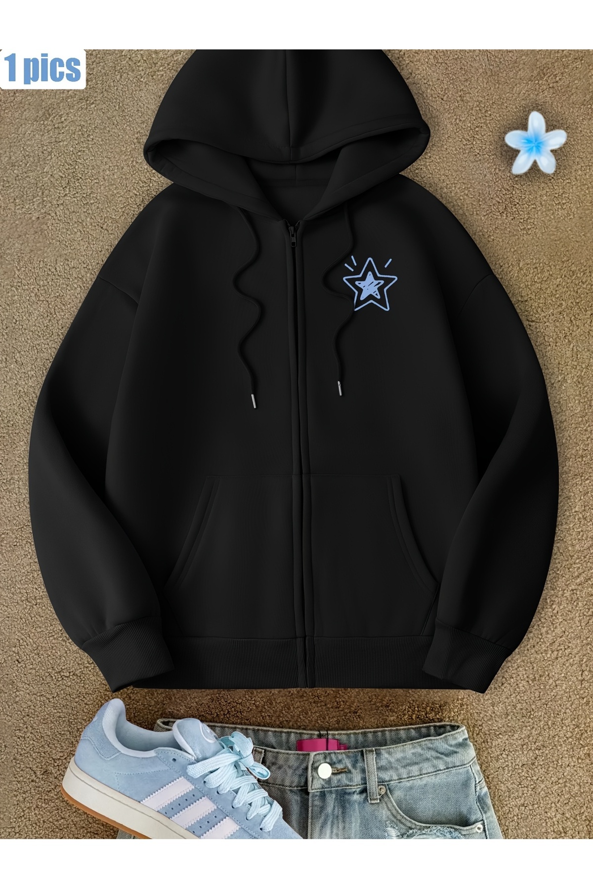 Unisex Pusula Baskılı Oversize İçi Pamuklu Fermuarlı Hırka Unisex Pusula Baskılı Oversize İçi Pamuklu Fermuarlı Hırka hırkapusula XL