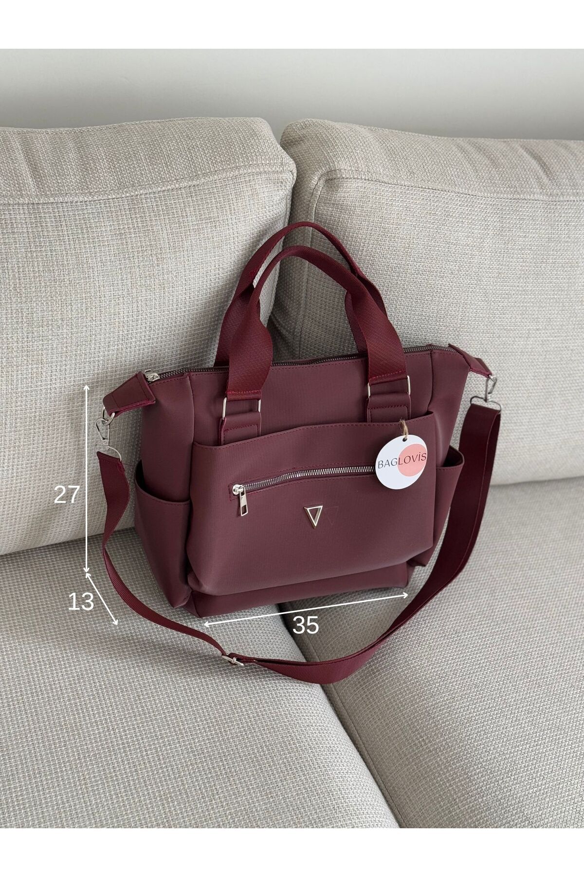 YANI VE ÖNÜ CEPLİ İÇİ ASTARLI BORDO KADIN OMUZ ÇANTASI EN35 BOY27 YANI VE ÖNÜ CEPLİ İÇİ ASTARLI BORDO KADIN OMUZ ÇANTASI EN35 BOY27 BMAZ تک سایز