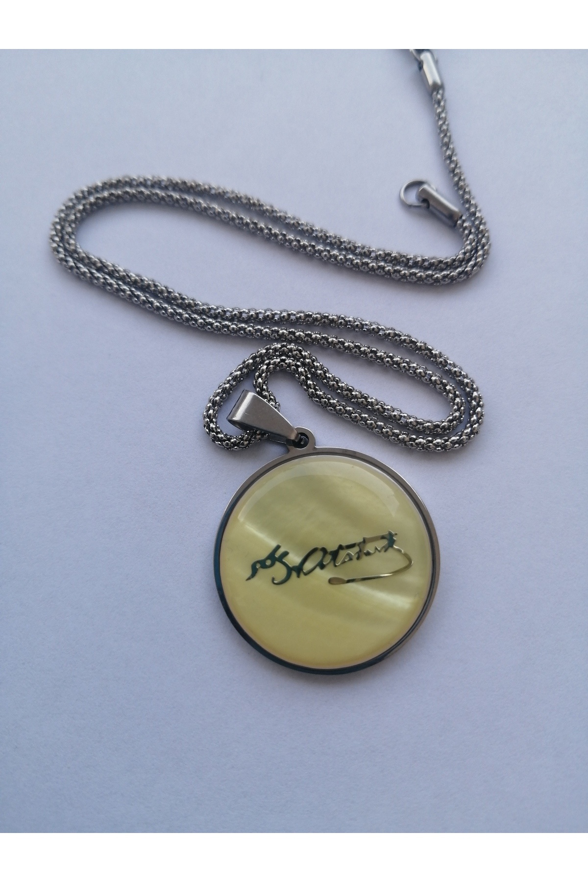 Atatürk İmzalı Madalyon Kolye – Özel Tasarım Gümüş Renk Takı Atatürk İmzalı Madalyon Kolye – Özel Tasarım Gümüş Renk Takı VATES-KLY-061-SLV تک سایز