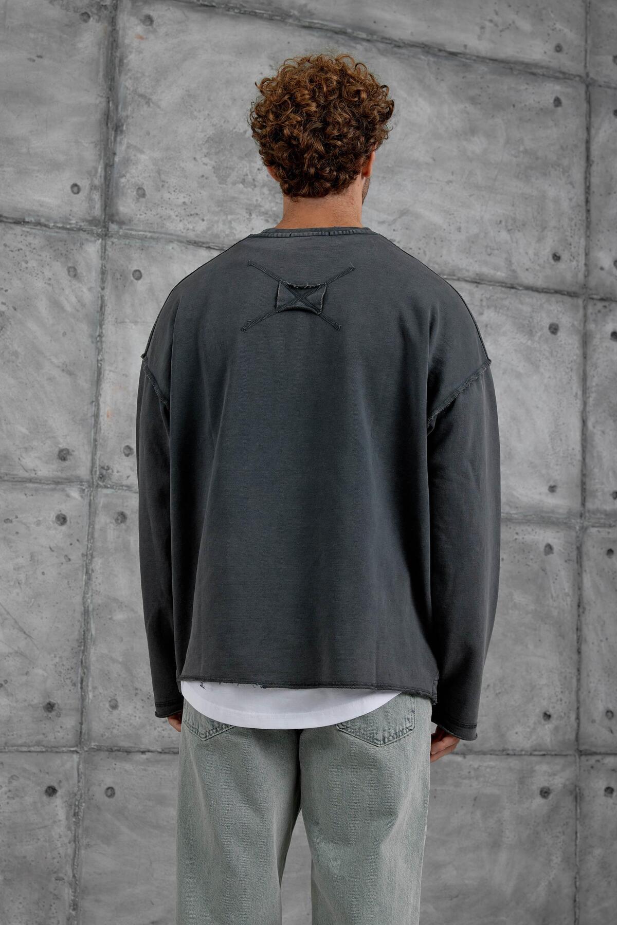 Siyah 8 Rakam Baskılı Kolu Parçalı Oversize Sweatshirt Siyah 8 Rakam Baskılı Kolu Parçalı Oversize Sweatshirt P-004375 XL