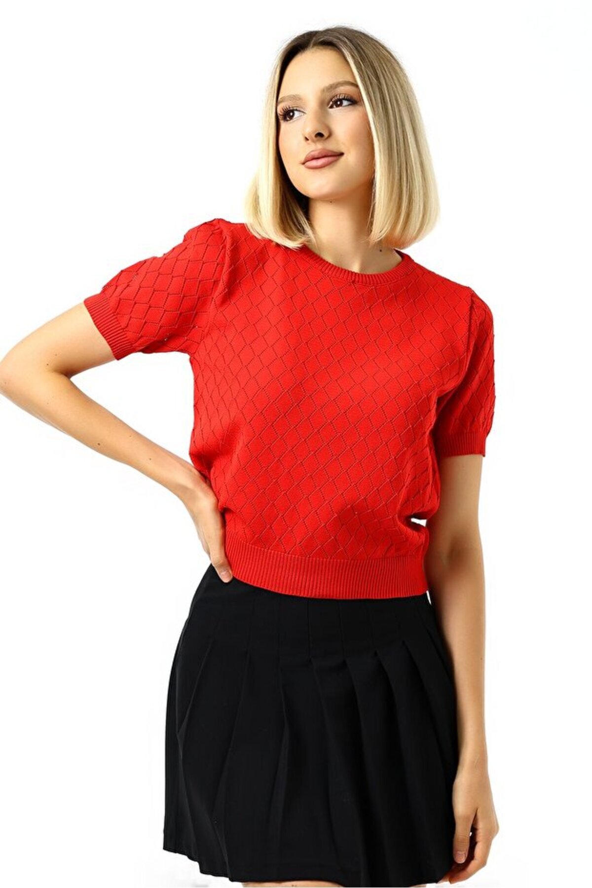 Kadın Turuncu Baklava Desenli Kısa Kol Ajurlu Triko Bluz Kadın Turuncu Baklava Desenli Kısa Kol Ajurlu Triko Bluz BAKLAVA-KISA-KOL Standart