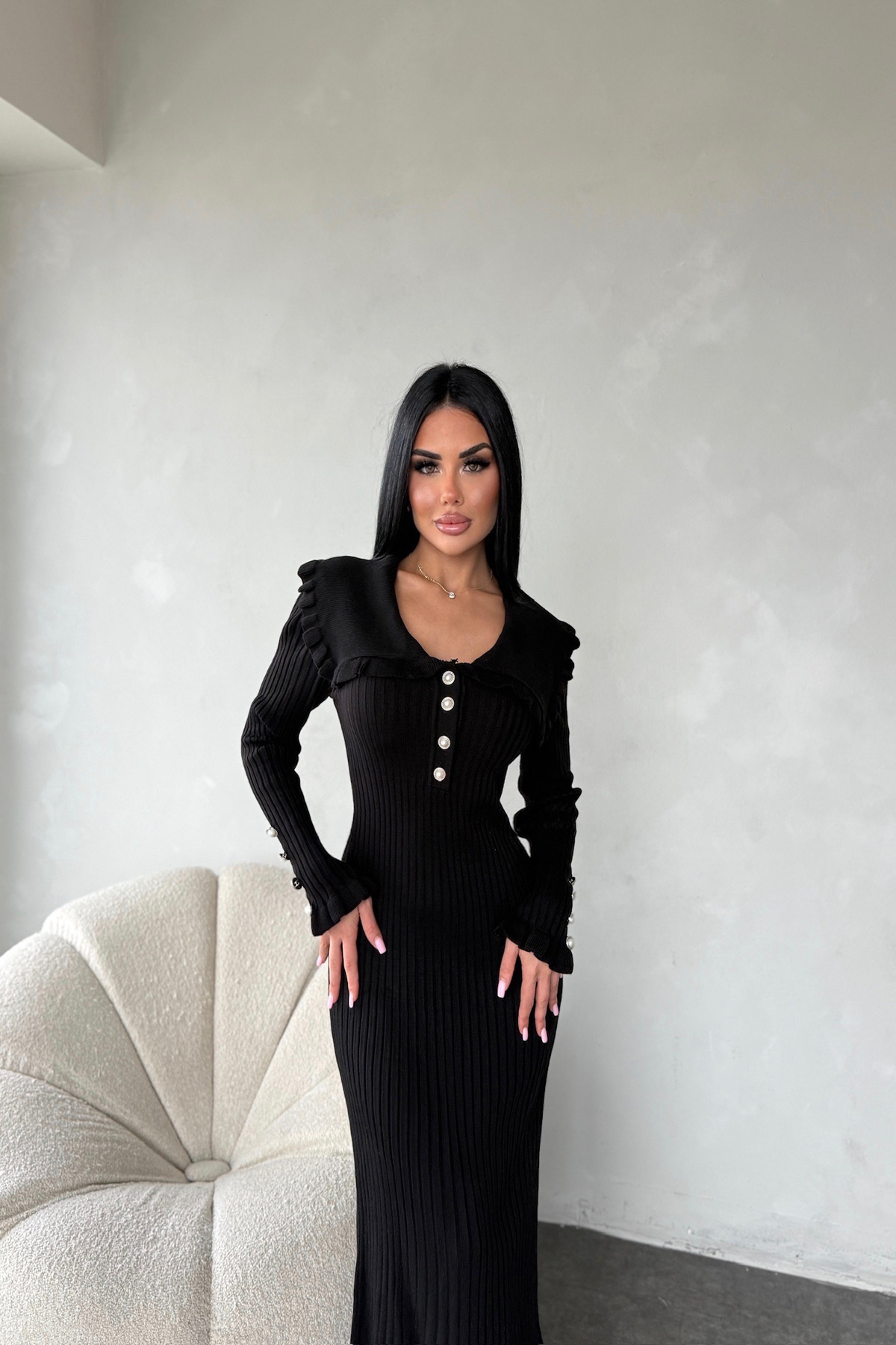 Kayık Yaka Önü Düğmeli Triko Elbise Kayık Yaka Önü Düğmeli Triko Elbise K-422 XL