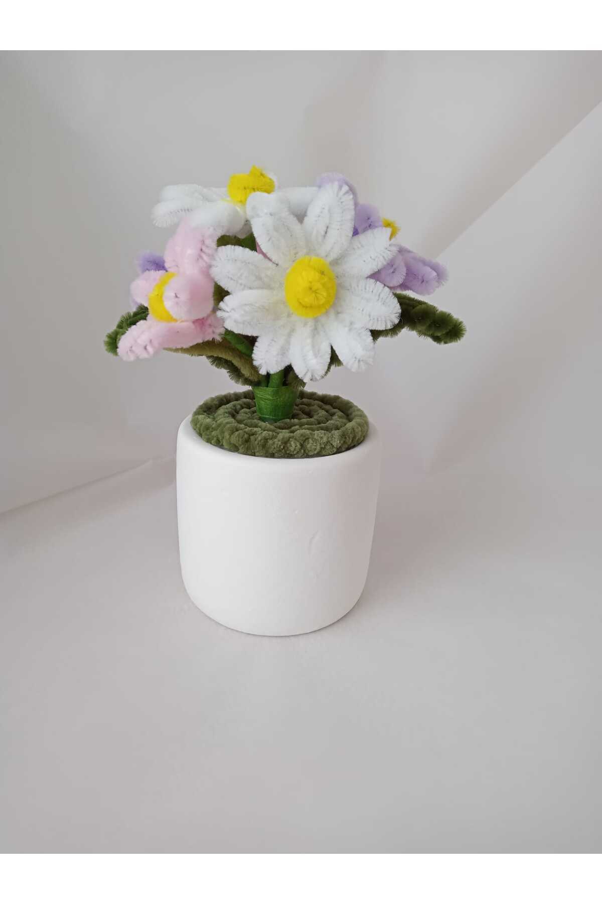 Saksılı Dekoratif Şönil Papatya Çiçek Saksılı Dekoratif Şönil Papatya Çiçek minisaksı00001 تک سایز
