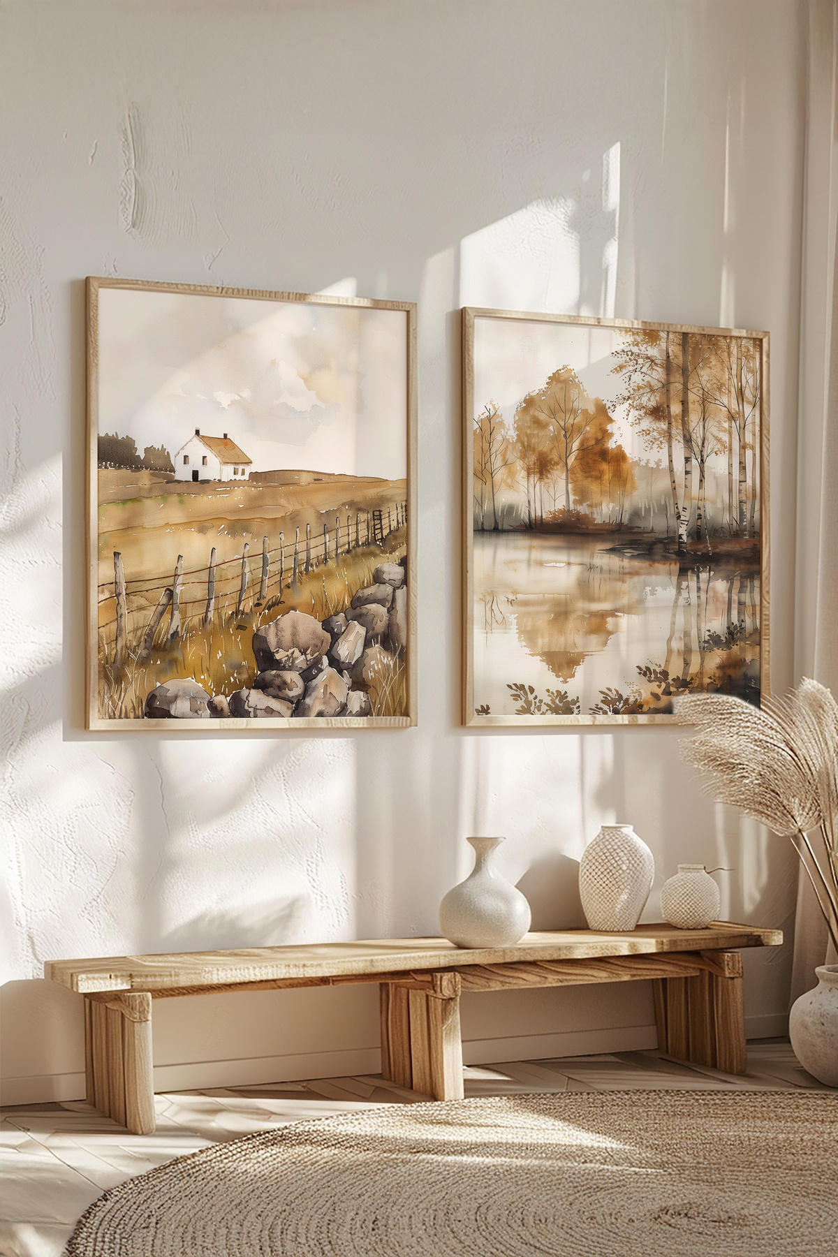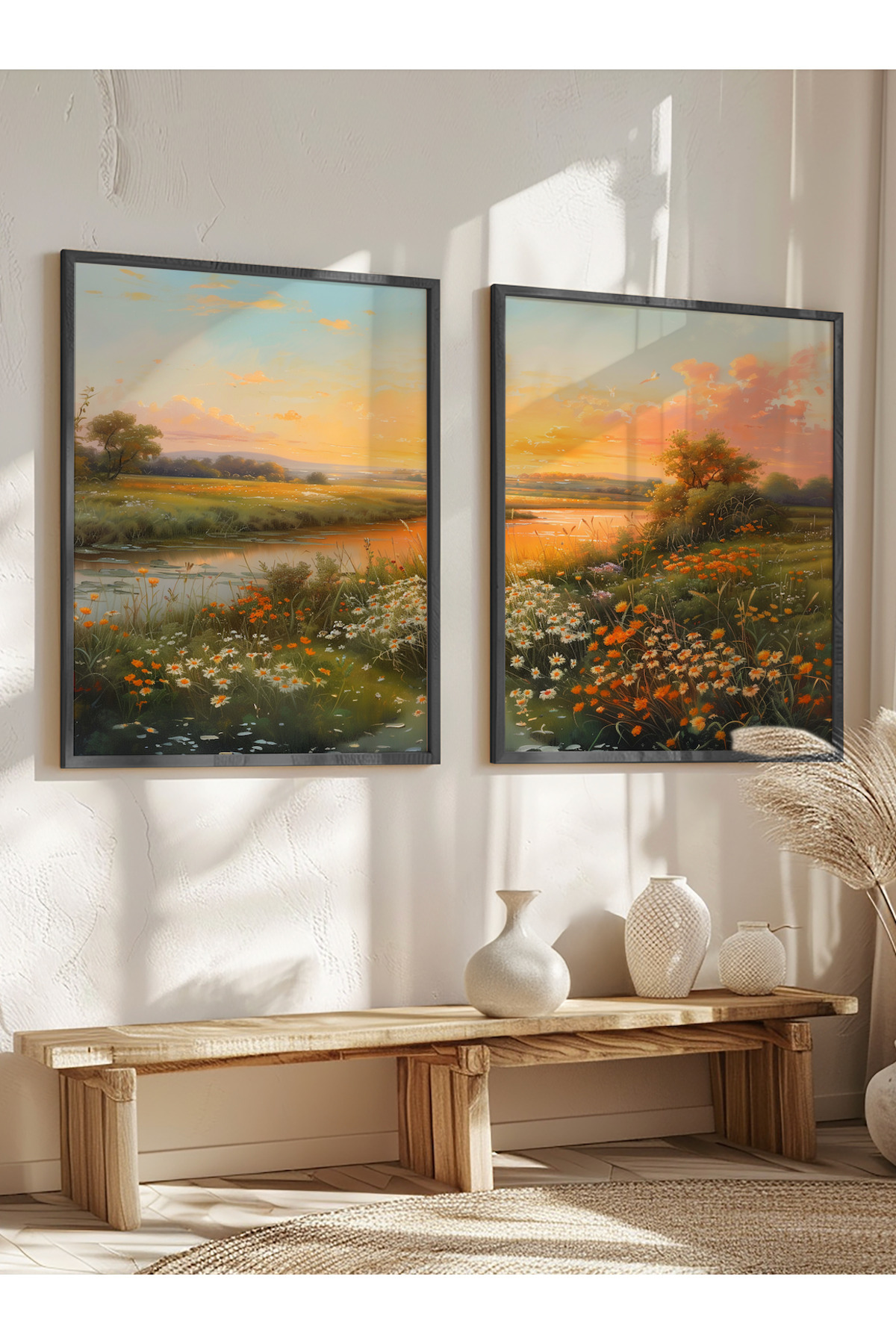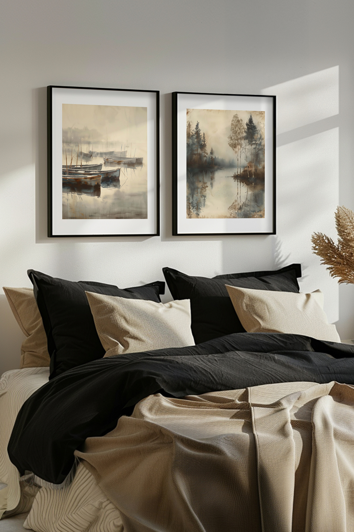 Beyaz Çerçeveli Suluboya Efektli Göl ve Kayık Manzaralı İkili Tablo Seti Yuna387 Beyaz Çerçeveli Suluboya Efektli Göl ve Kayık Manzaralı İkili Tablo Seti Yuna387 50 x 70