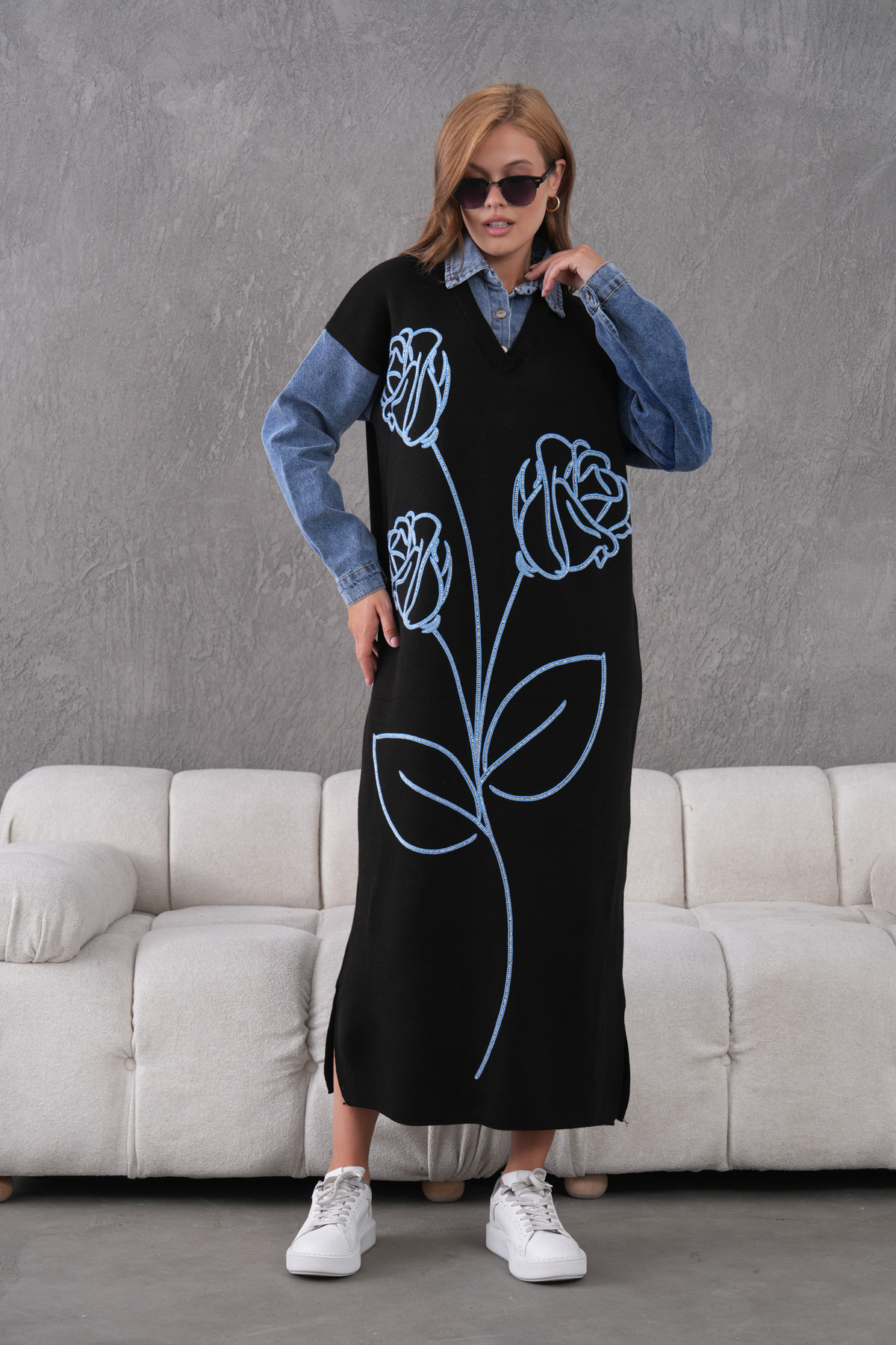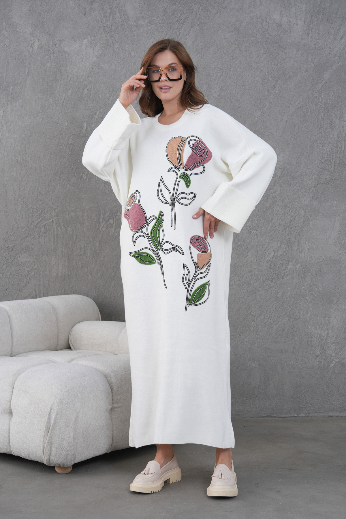 Kadın Önü Boncuk Ve Nakış İşlemeli Geniş Kalıp Uzun Triko Elbise Kadın Önü Boncuk Ve Nakış İşlemeli Geniş Kalıp Uzun Triko Elbise 526 Standart