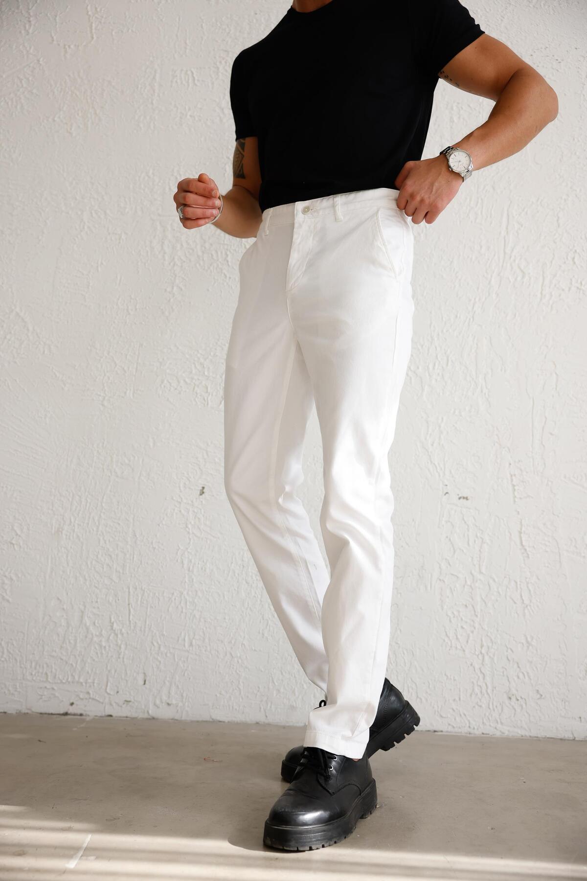 Erkek Armürlü Slim Fit Beyaz Pantolon Erkek Armürlü Slim Fit Beyaz Pantolon BR244170 38