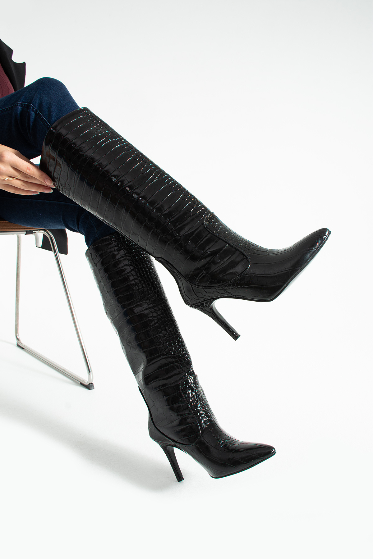 Kadın Siyah Süet Kalın Topuk Diz Üstü Çizme Kadın Siyah Süet Kalın Topuk Diz Üstü Çizme 25505 40