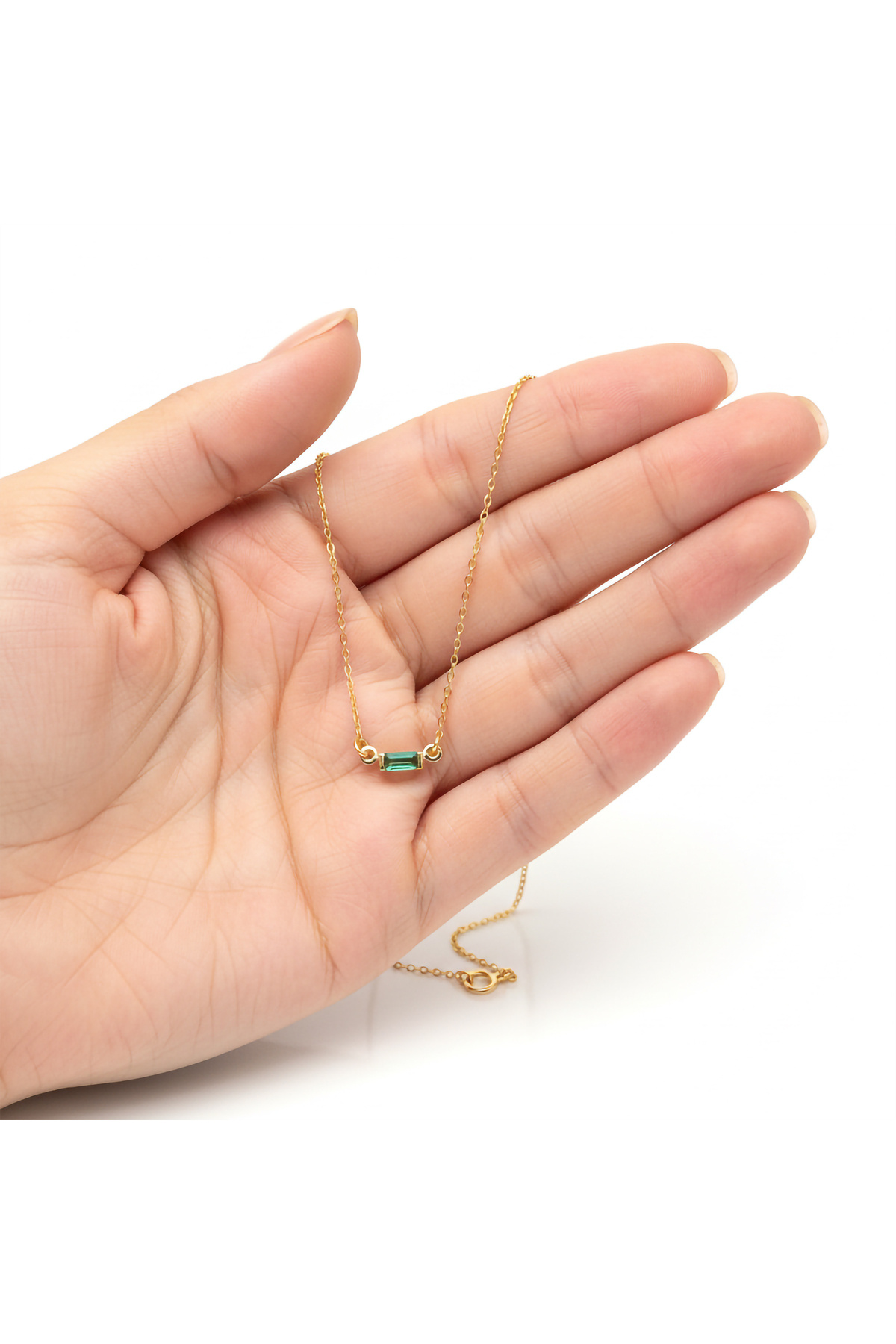 Zümrüt Taşlı Baget Kolye 925 Ayar Gümüş Altın Kaplama Kadın Kolye Zümrüt Taşlı Baget Kolye 925 Ayar Gümüş Altın Kaplama Kadın Kolye BE041807 41 cm