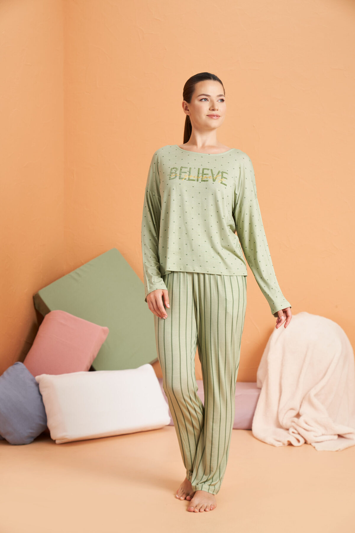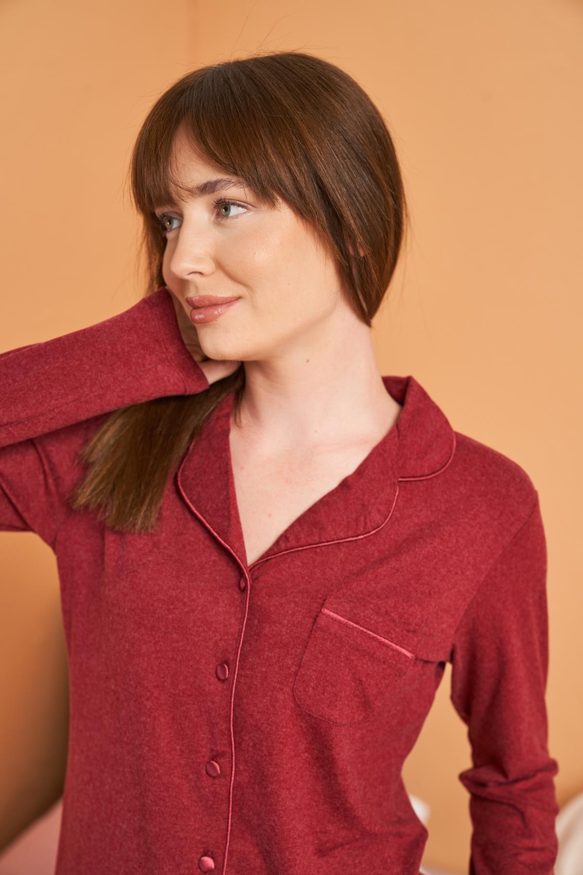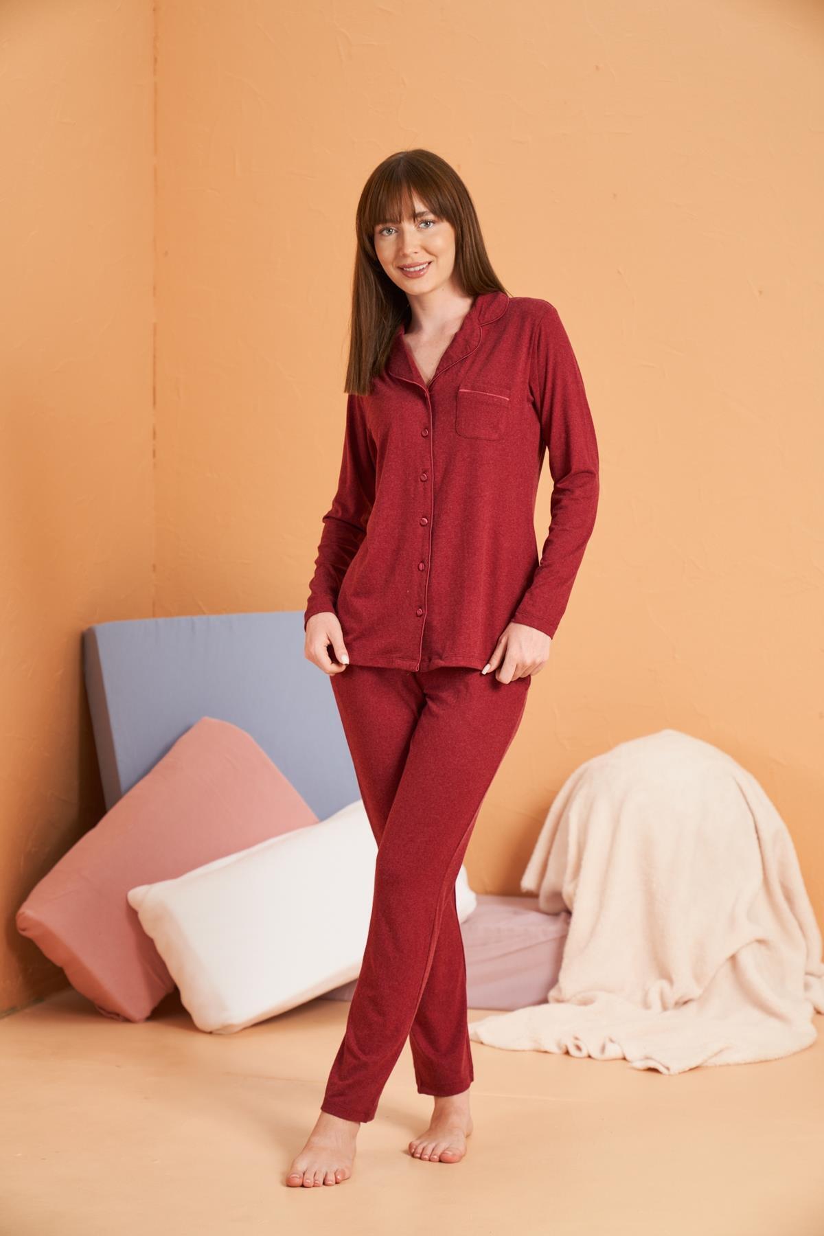 Kadın Biyeli Düğmeli Cepli Uzun Kol Pijama Takımı Yün Viskon Kumaş Kadın Biyeli Düğmeli Cepli Uzun Kol Pijama Takımı Yün Viskon Kumaş PJS28090 42
