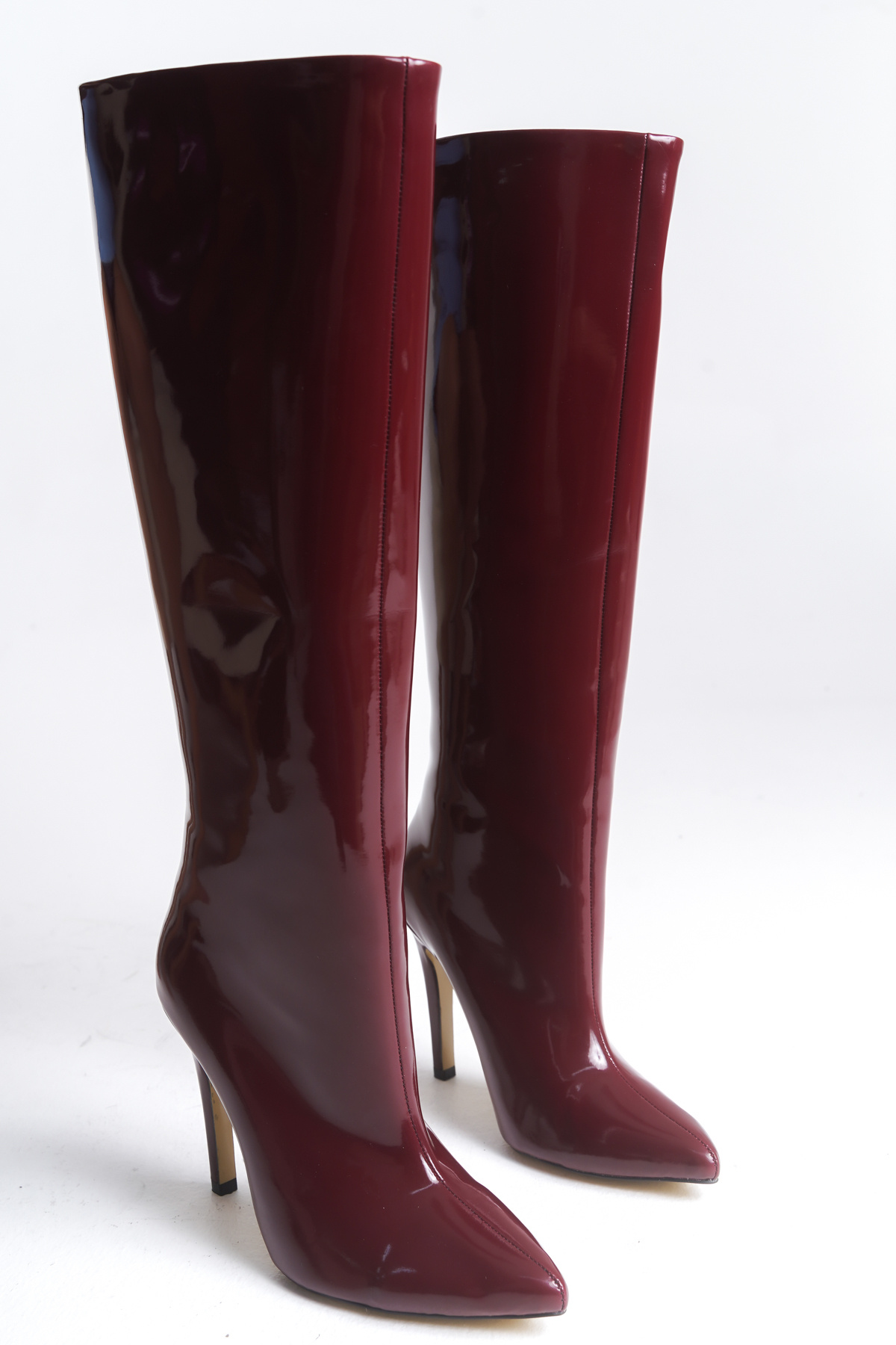 Bordo Rugan Yüksek Topuklu Çekme Çizme Bordo Rugan Yüksek Topuklu Çekme Çizme ESK25 40