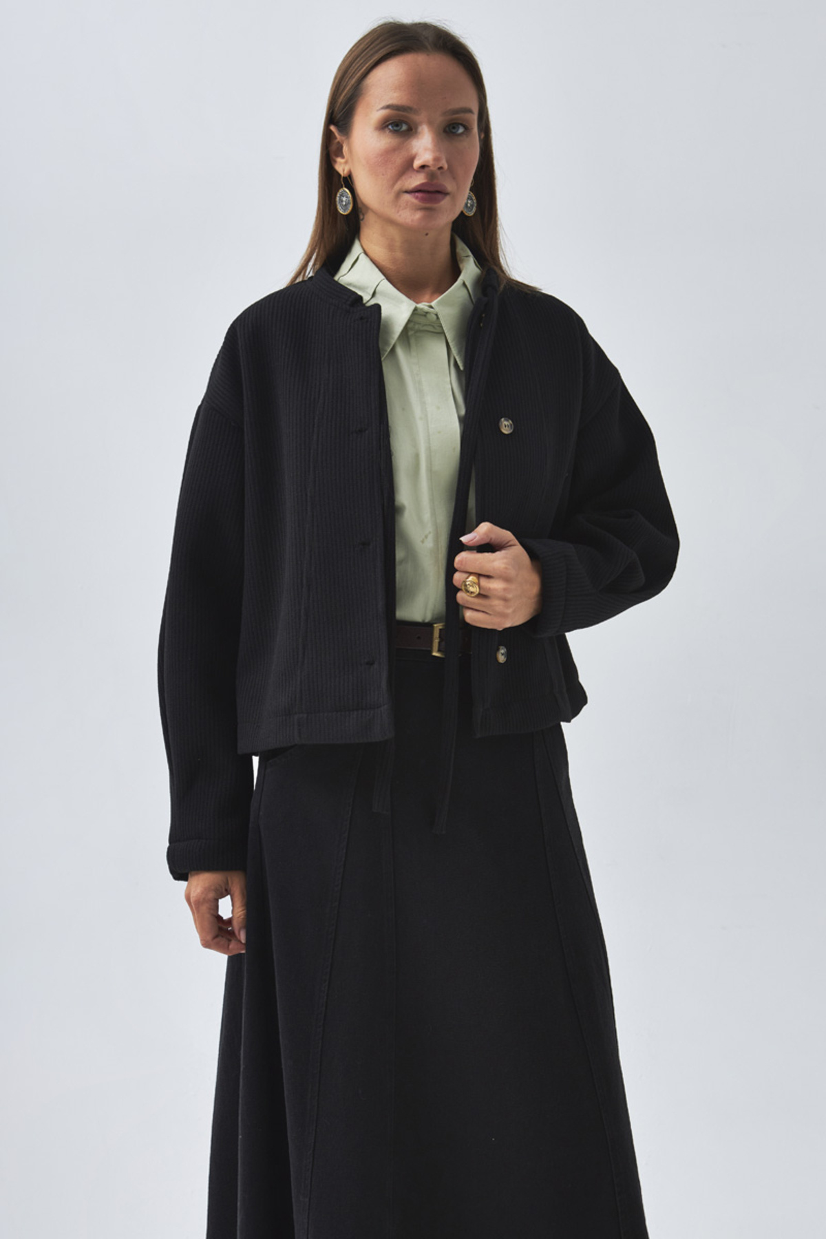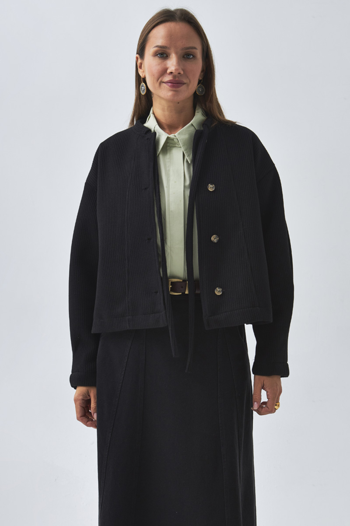 Yakası Bağlamalı Kısa Ceket Siyah Yakası Bağlamalı Kısa Ceket Siyah 8322 XL