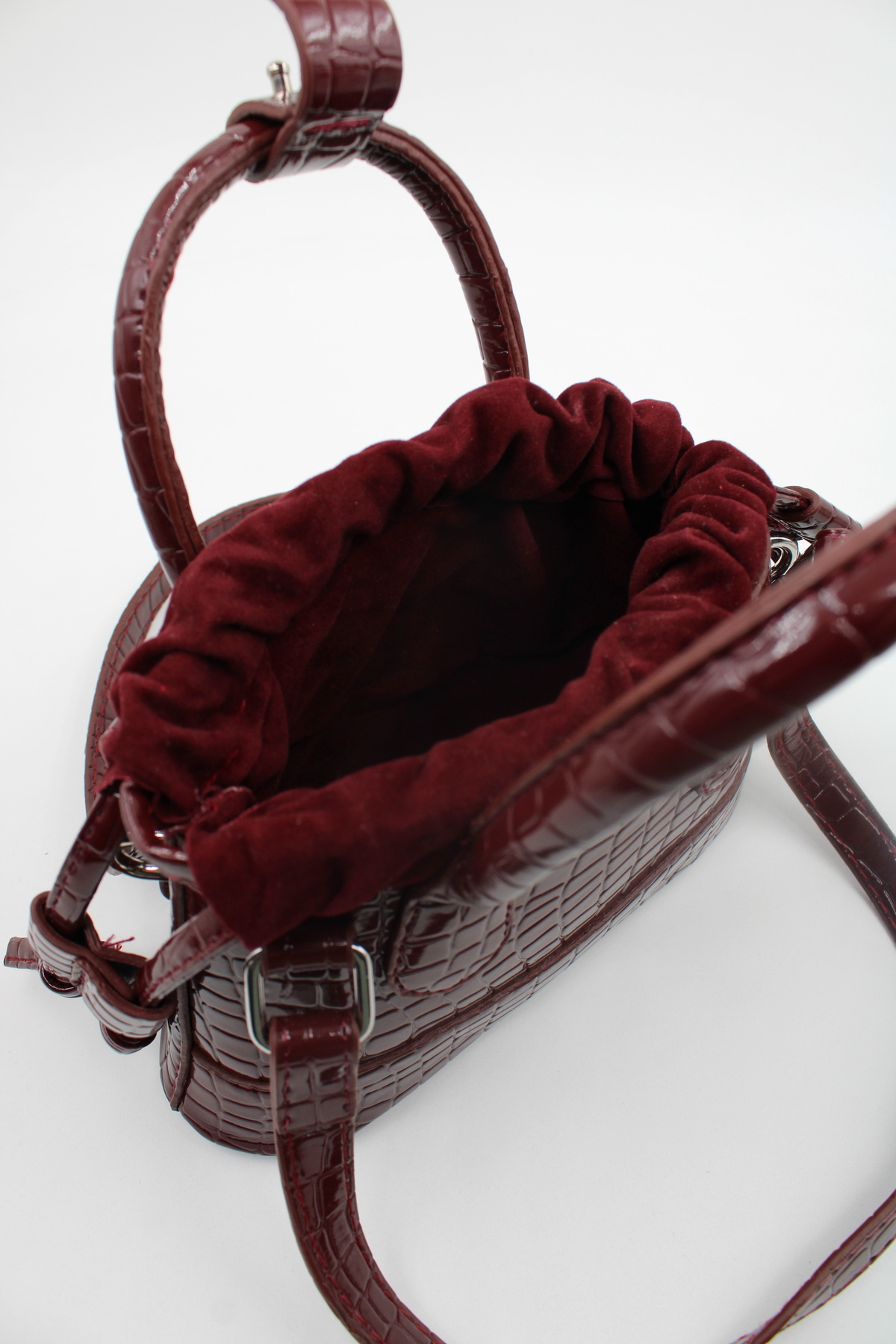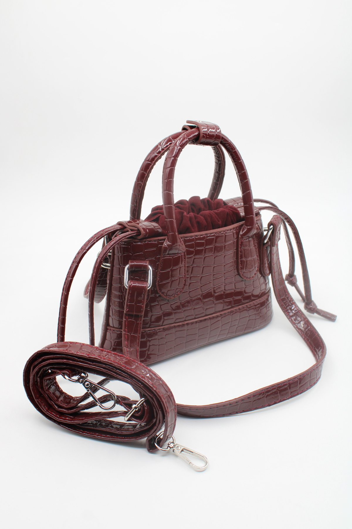 Kadın Mini Kroko Deri Çok Saplı Büzgü Ağızlı El, Kol ve Omuz Çantası Kadın Mini Kroko Deri Çok Saplı Büzgü Ağızlı El, Kol ve Omuz Çantası LASSO-L37 تک سایز