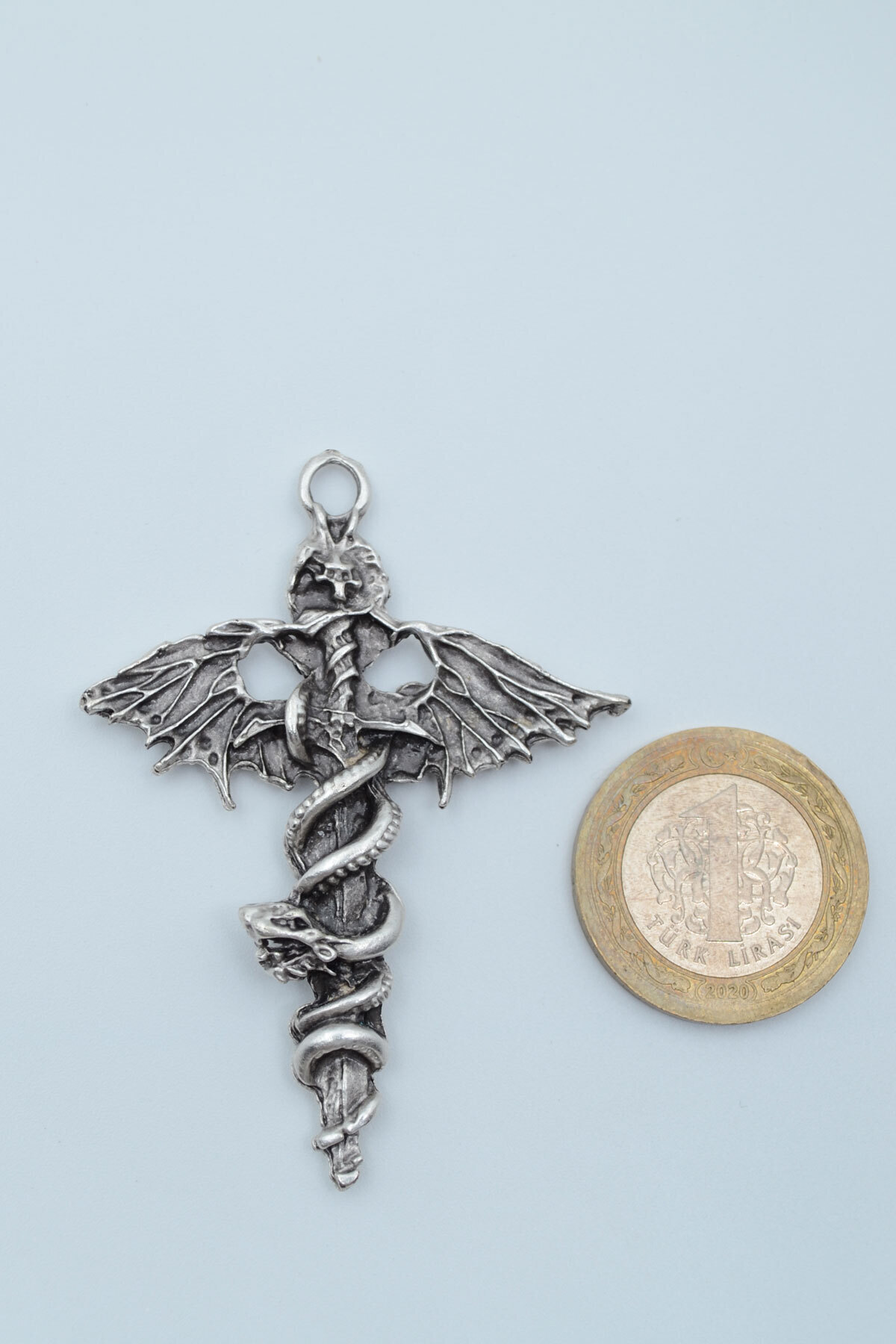 Kılıç, Yılan ve Yarasa Kolye Düz Ezme Zincir Gümüş Kaplama Gotik ve Fantastik Stil Kılıç, Yılan ve Yarasa Kolye Düz Ezme Zincir Gümüş Kaplama Gotik ve Fantastik Stil ERK1017-Z1 تک سایز
