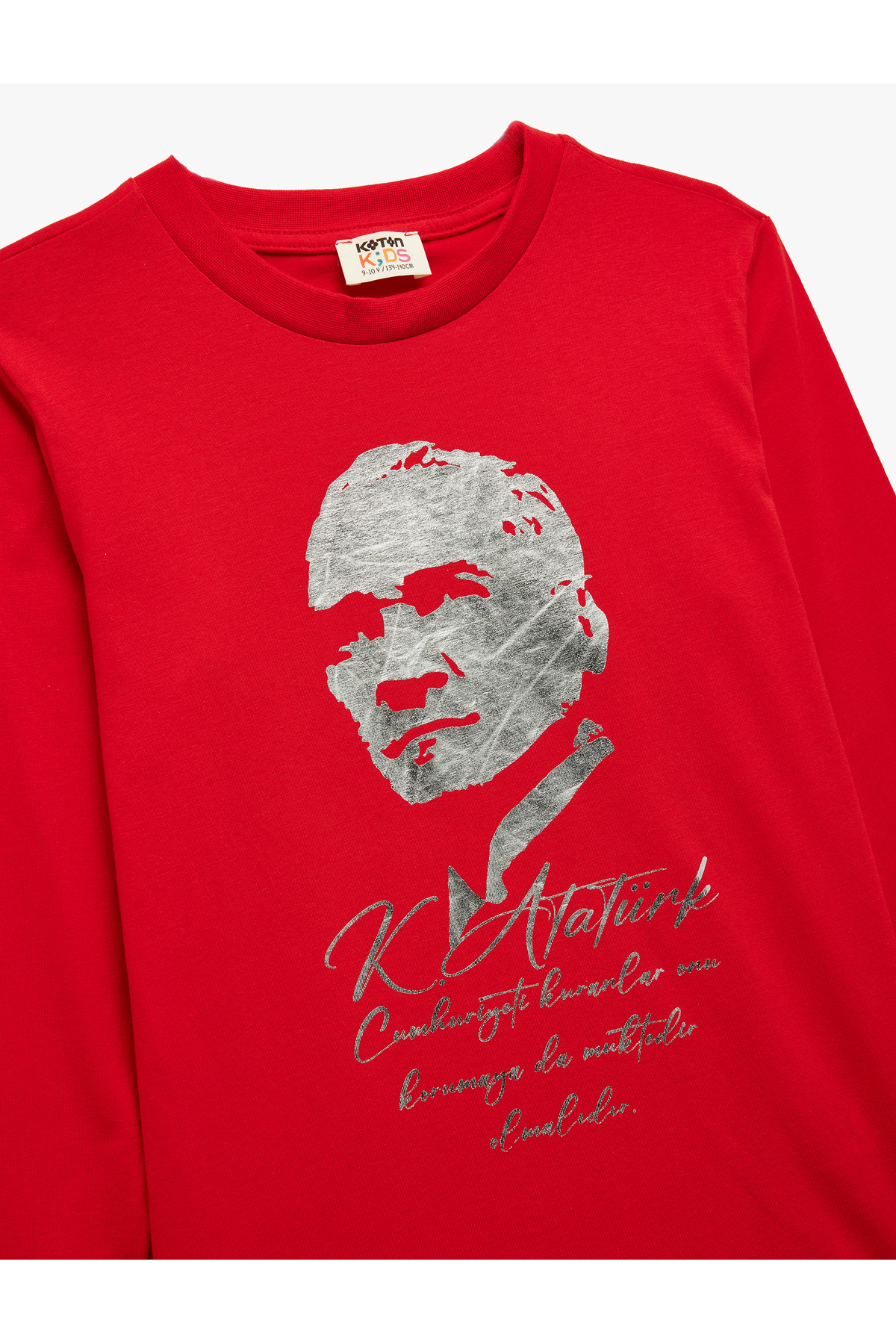 Pamuklu Uzun Kollu Bisiklet Yaka Atatürk Baskılı Tişört Pamuklu Uzun Kollu Bisiklet Yaka Atatürk Baskılı Tişört 6WKG10483AK 13-14 Yaş