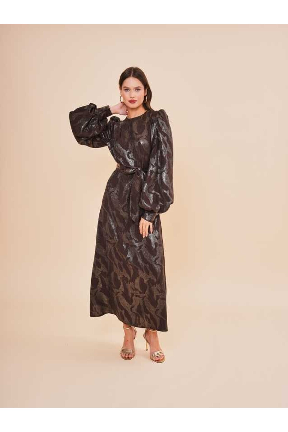 Desenli Uzun Kollu Kuşaklı Şık Kadın Elbise 50926 Desenli Uzun Kollu Kuşaklı Şık Kadın Elbise 50926 2620450926 44